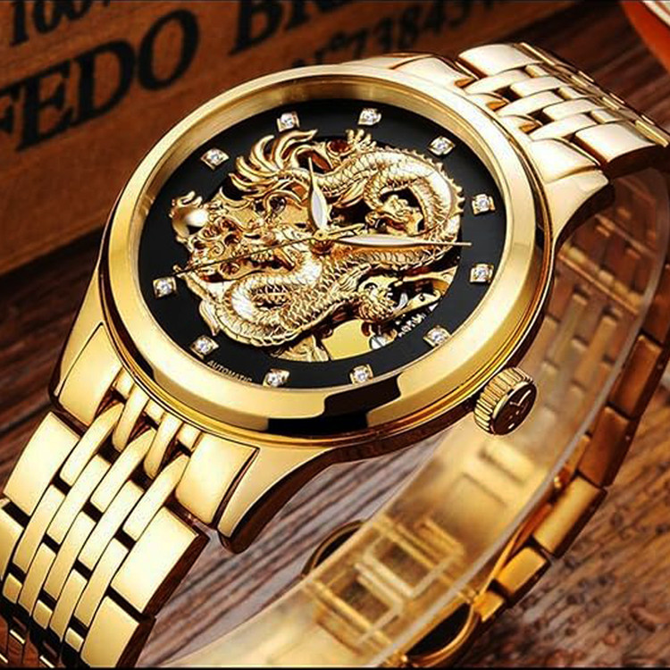 ساعت مچی مردانه اتوماتیک دراگون Rolex Dragon مدل اژدها طلایی مشکی اتومات