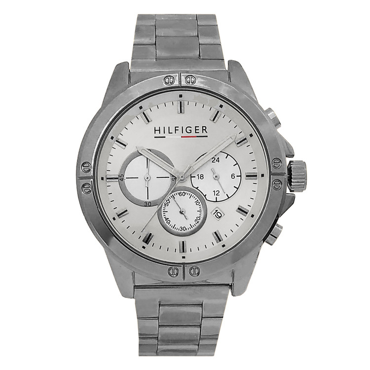 بندفلزی مردانه سه موتوره فعال نقره ای رنگ ثابت فروش ویژه تاریخ شمار اسپرت و شیک هلیفیگر