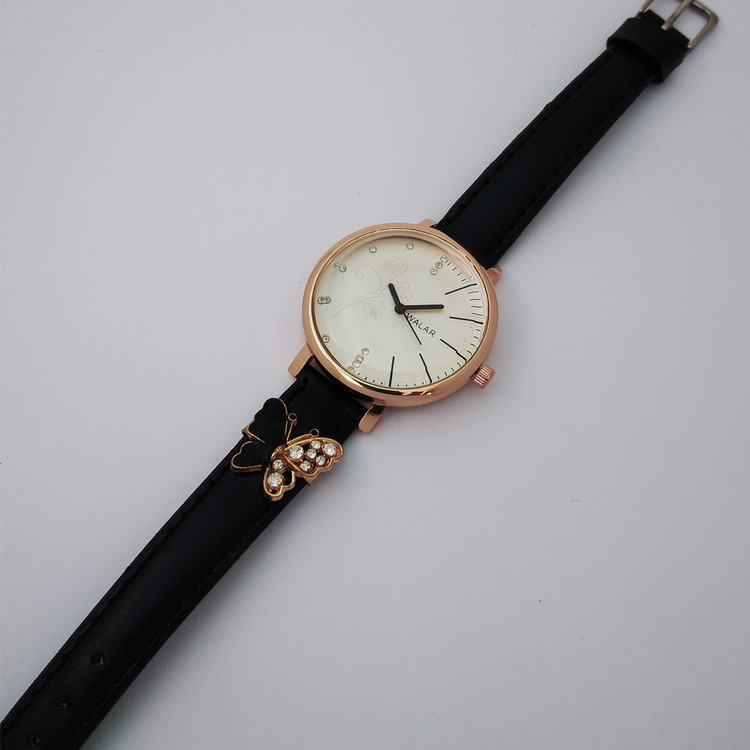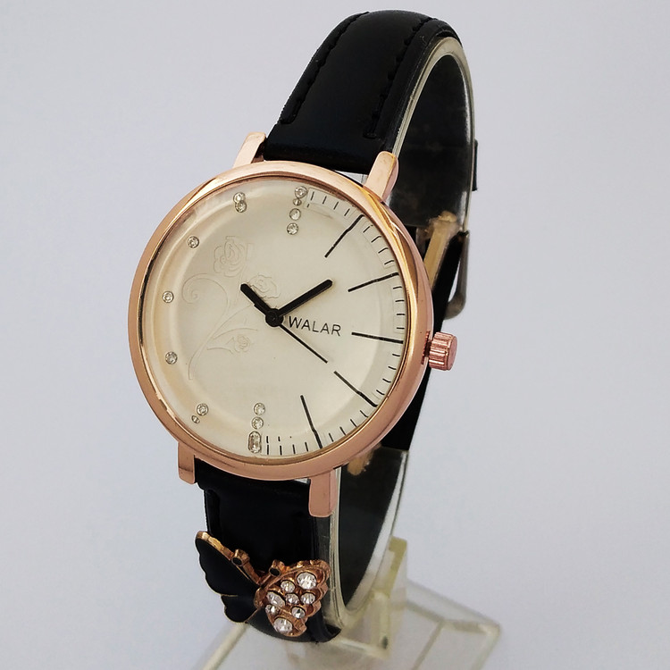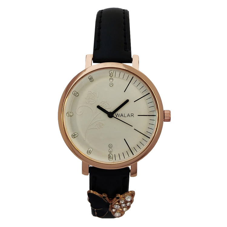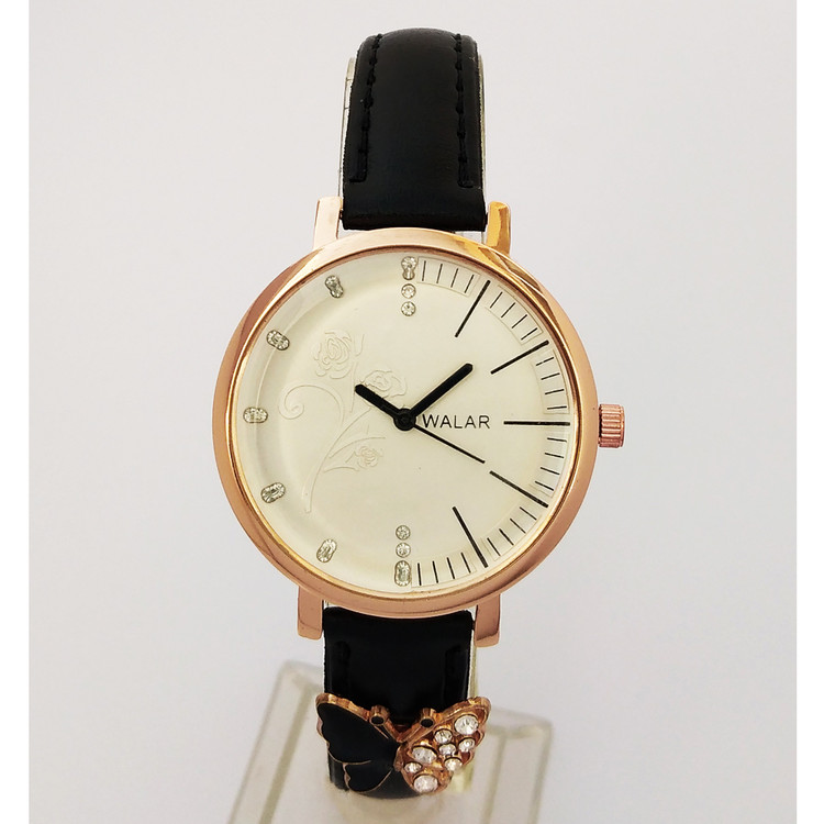 ساعت بندچرمی زنانه والار WALARشیشه تراش خورده ساعت خاص و زیبا کادوی لاکچری حراج ساعت ساعت بندچرم مشکی طلایی