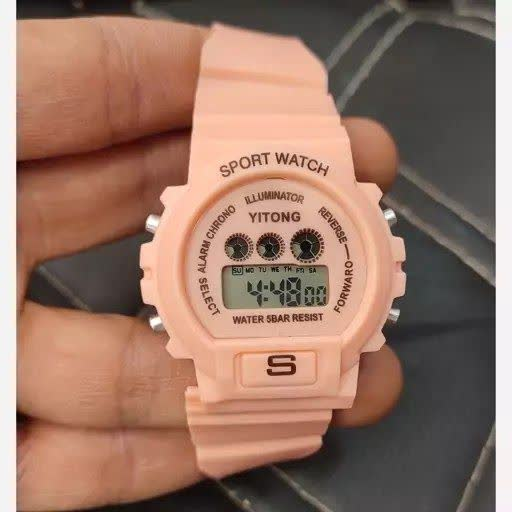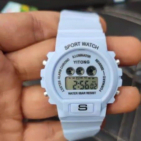 ساعت مچی اسپرت پسرانه و دخترانه چراغدار تاریخ شمار ورزشی SPORT WATCH بند رنگی آبی کالباسی