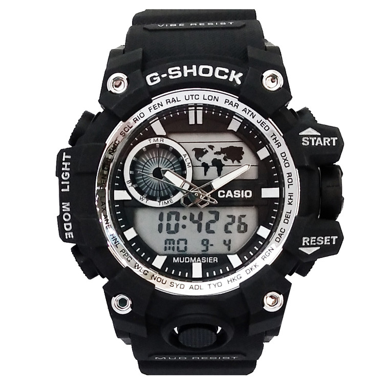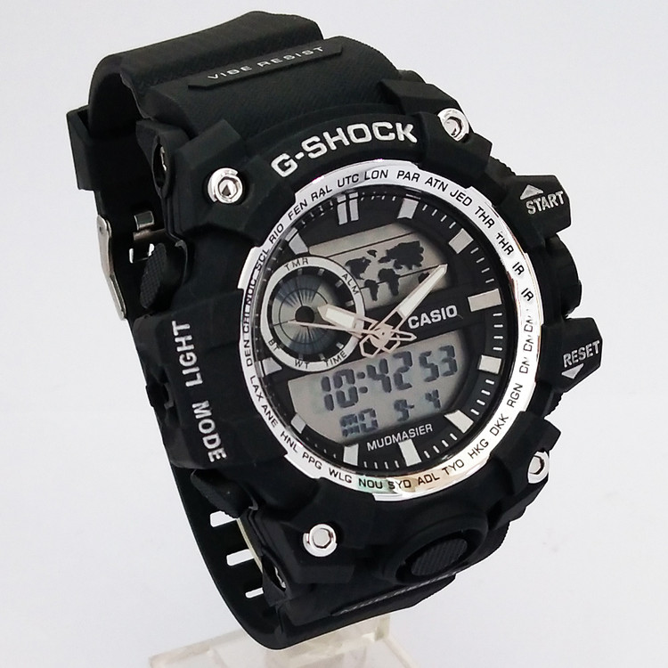 جی شاک مردانه G-SHOCK ساعت اسپرت مشکی نقره ای ارسال رایگان دوموتوره دوزمانه ضدآب SPORTجیشاک