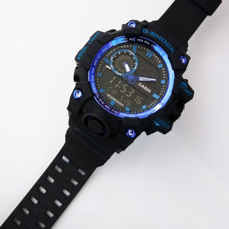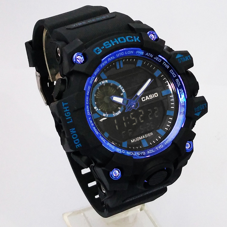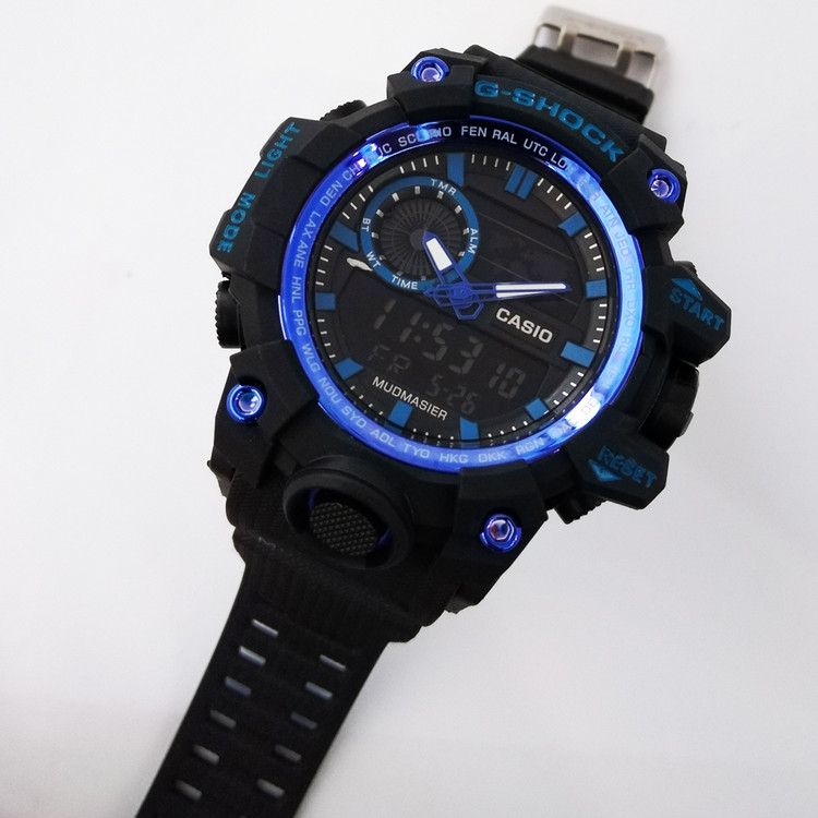 جی شاک مردانه G-SHOCK ساعت اسپرت مشکی آبی ارسال رایگان دوموتوره دوزمانه ضدآب SPORTجیشاک