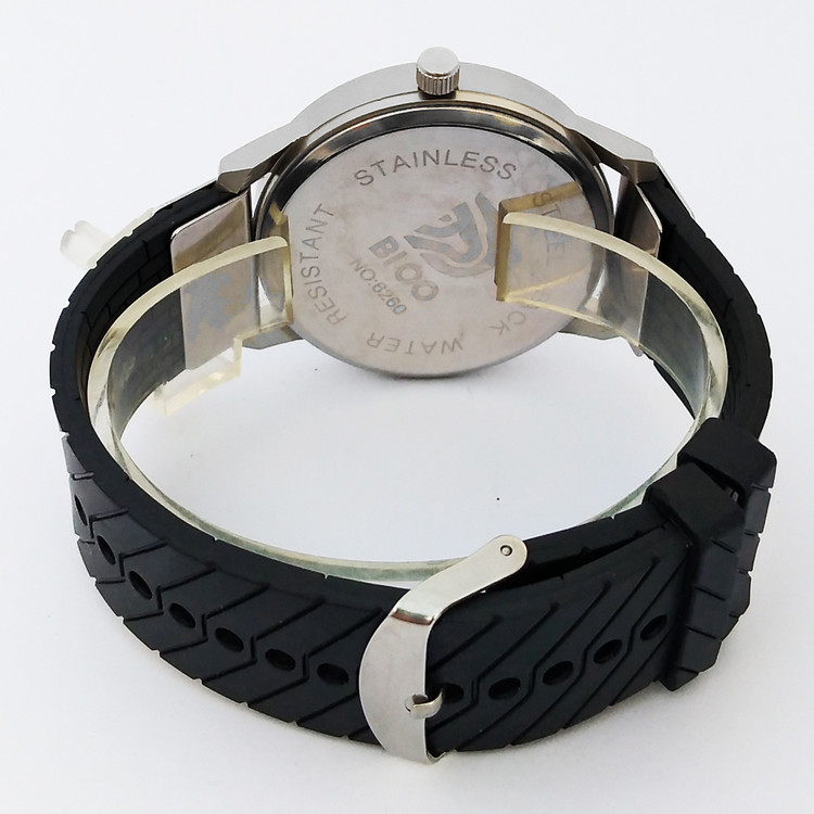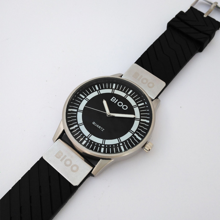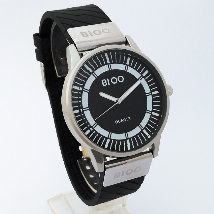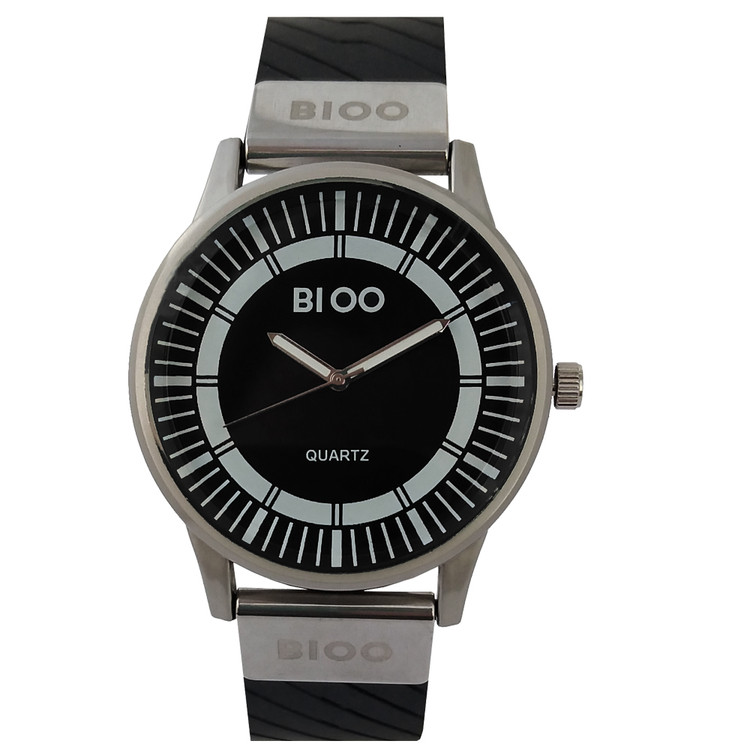 ساعت بندسیلیکونی مردانه قاب فلزی مشکی نقره ای کادومردانه حراج آنلاین بیو
