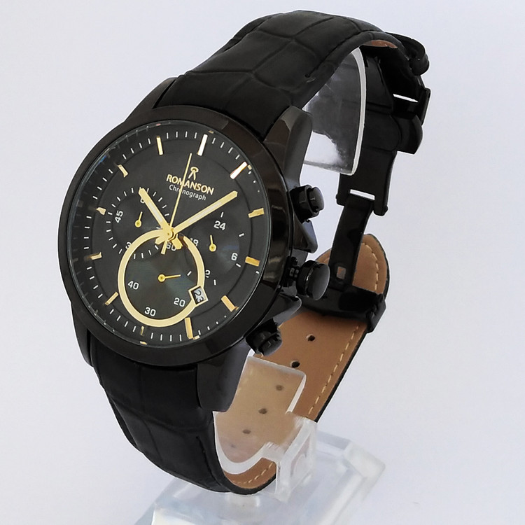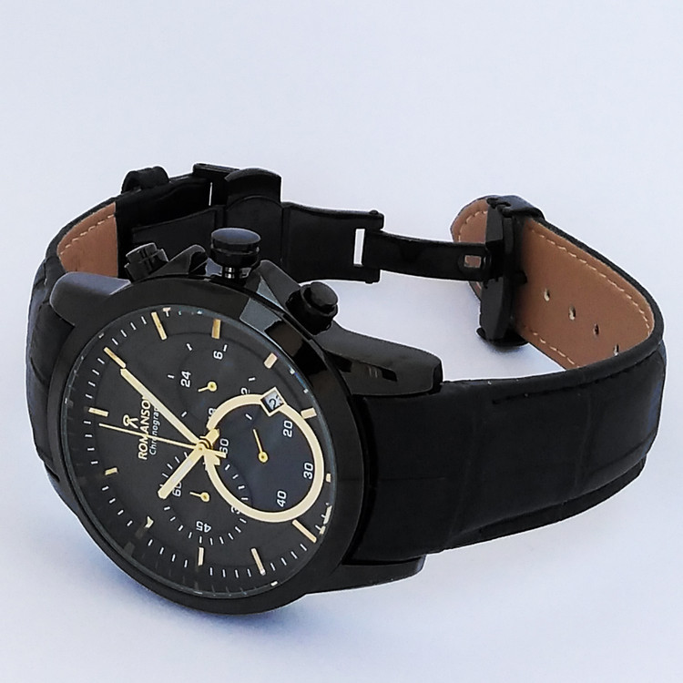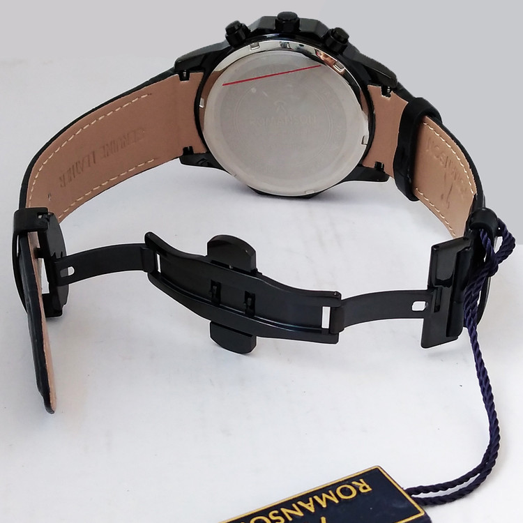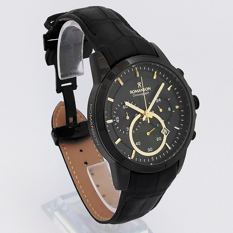 ساعت بندچرمی مردانه سه موتور رومانسون مشکی طلایی اسپرت کرنوگراف تاریخ دار ضدآب بندچرمیROMANSON ارسال رایگان
