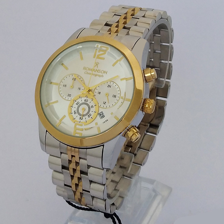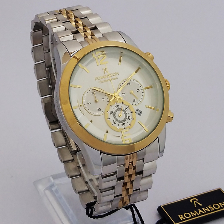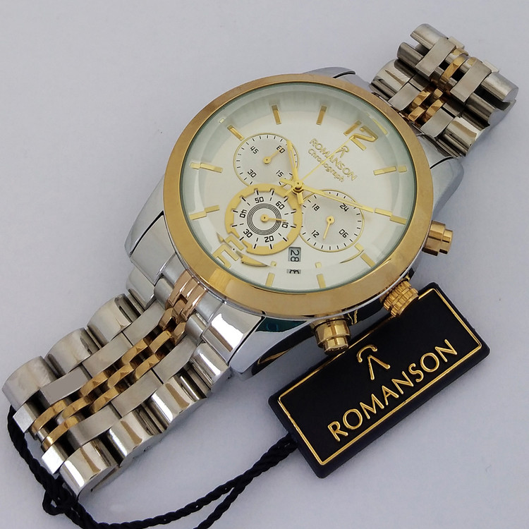 ساعت رومانسون مچی مردانه طلایی نقره ای SPORT اسپرتROMANSON سه موتوره ضدآب ساعت خاص عقربه ای بند فلزی کرنوگراف