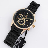 رومانسون ساعت مردانه مشکی طلایی مردانه سه موتور کرنوگراف تاریخ دار ضدآب بندفلزیROMANSON ارسال رایگان کادو