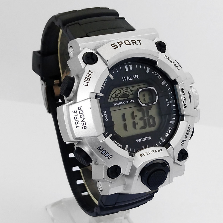 ساعت پسرانه دیجیتال ورزشیSPORT اسپرت مشکی نقره ای خاص والار WALAR