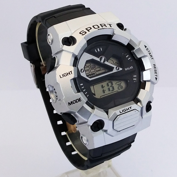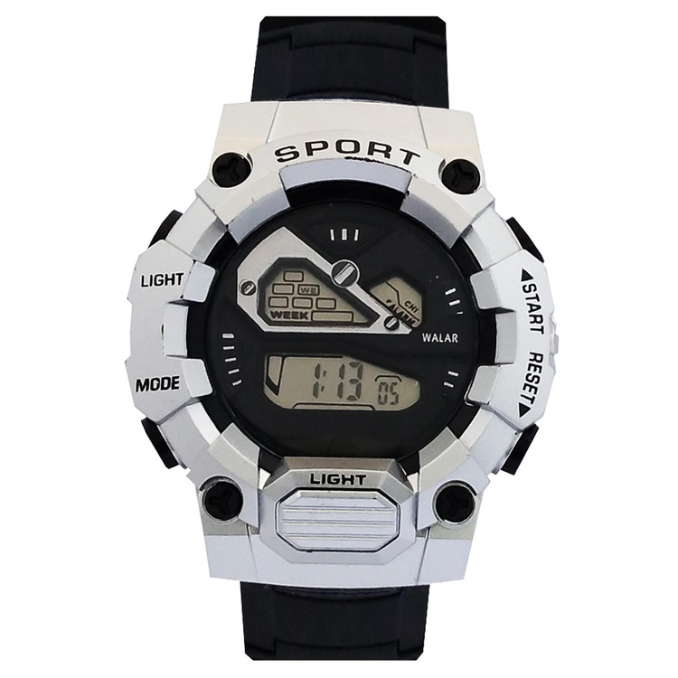 ساعت ورزشیSPORT اسپرت پسرانه دیجیتال مشکی نقره ای والار WALAR