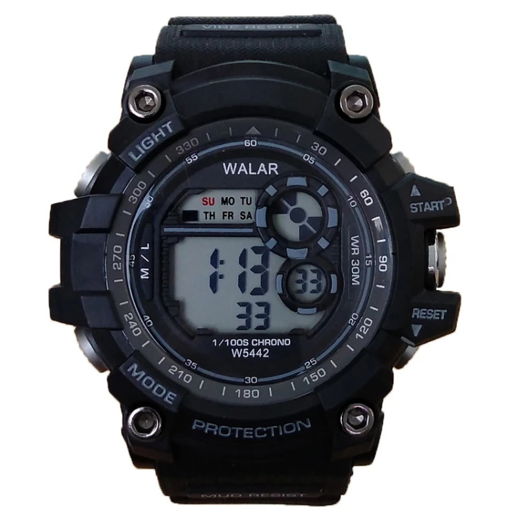 ساعت مچی دیجیتال مردانه و پسرانه مشکی آبی والار WALARمقاوم در برابر آب چراغدار سورمه ای کرنومتردار اسپرت ورزشیSPORT ارسال رایگان