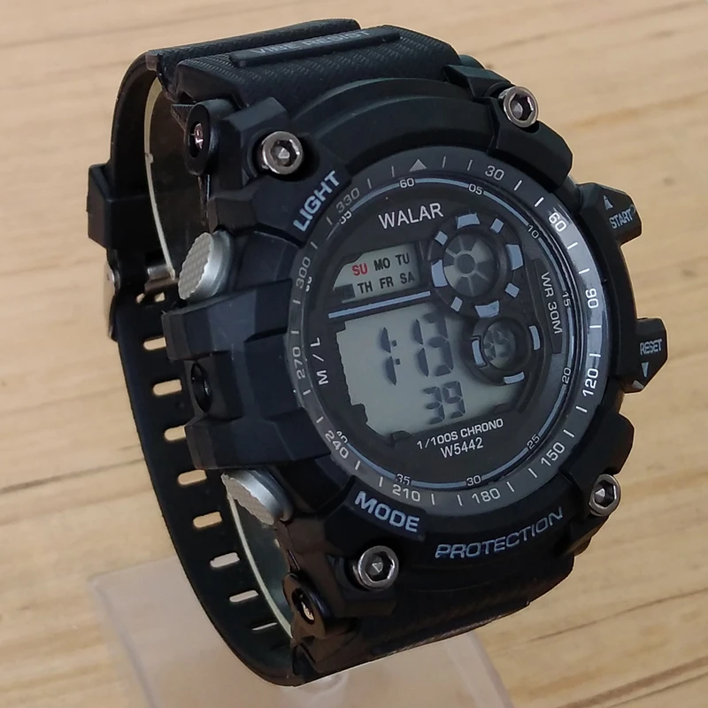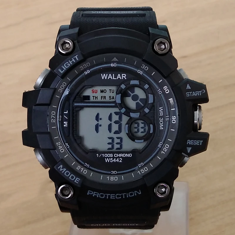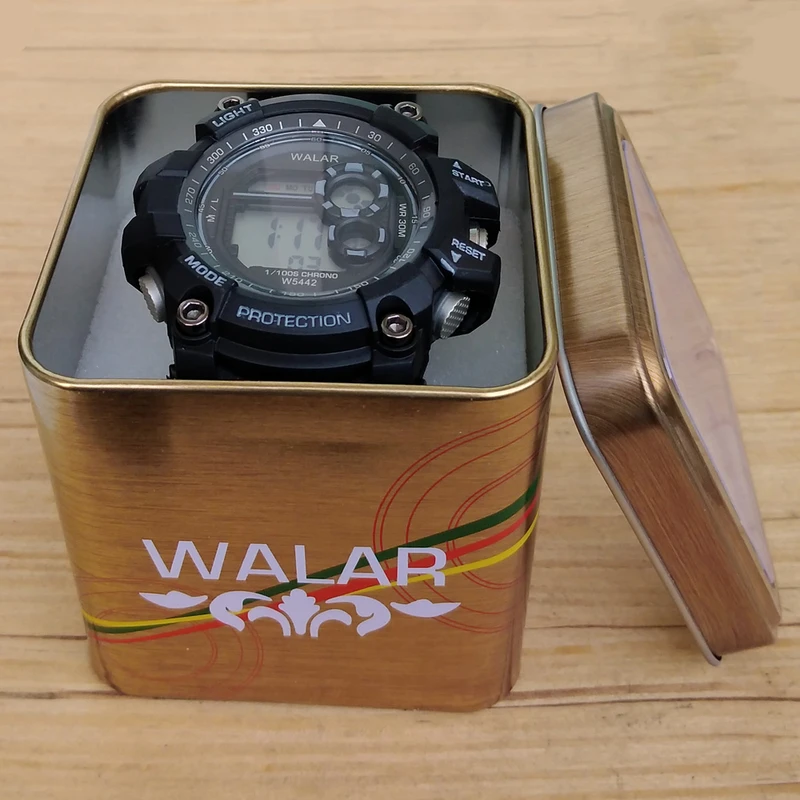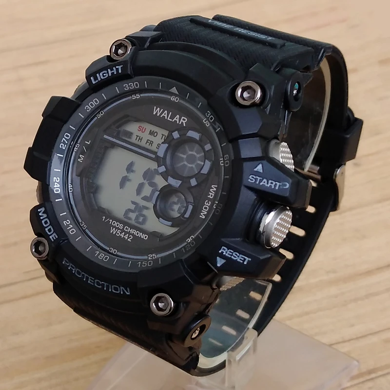 ساعت مچی دیجیتال مردانه و پسرانه مشکی آبی والار WALARمقاوم در برابر آب چراغدار سورمه ای کرنومتردار اسپرت ورزشیSPORT ارسال رایگان