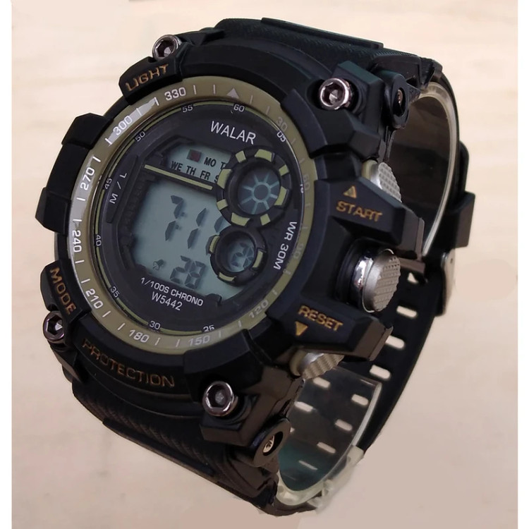 ساعت مچی دیجیتال مردانه و پسرانه مشکی زیتونی والار WALARمقاوم در برابر آب چراغدار کرنومتردار اسپرت ورزشیSPORT ارسال رایگان