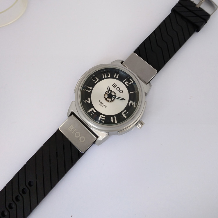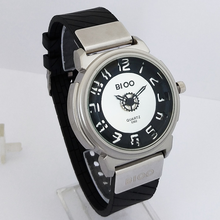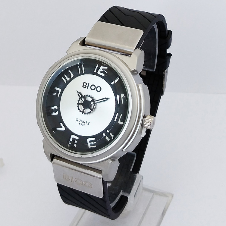 ساعت بندسیلیکونی مردانه مشکی نقره ای بیو کادومردانه قاب فلزی حراج آنلاینBIOO