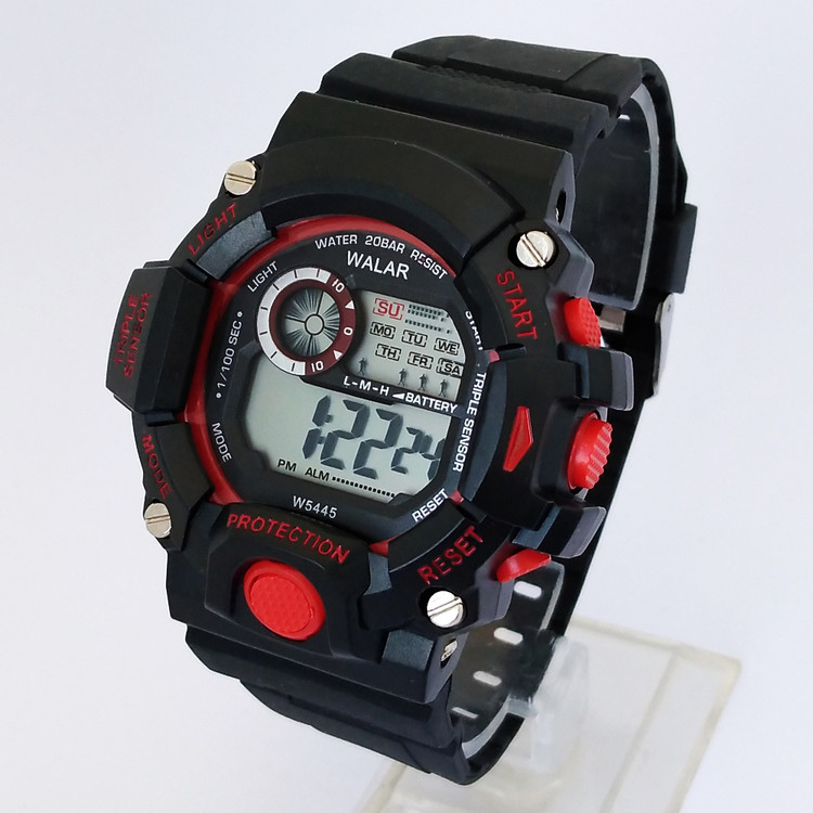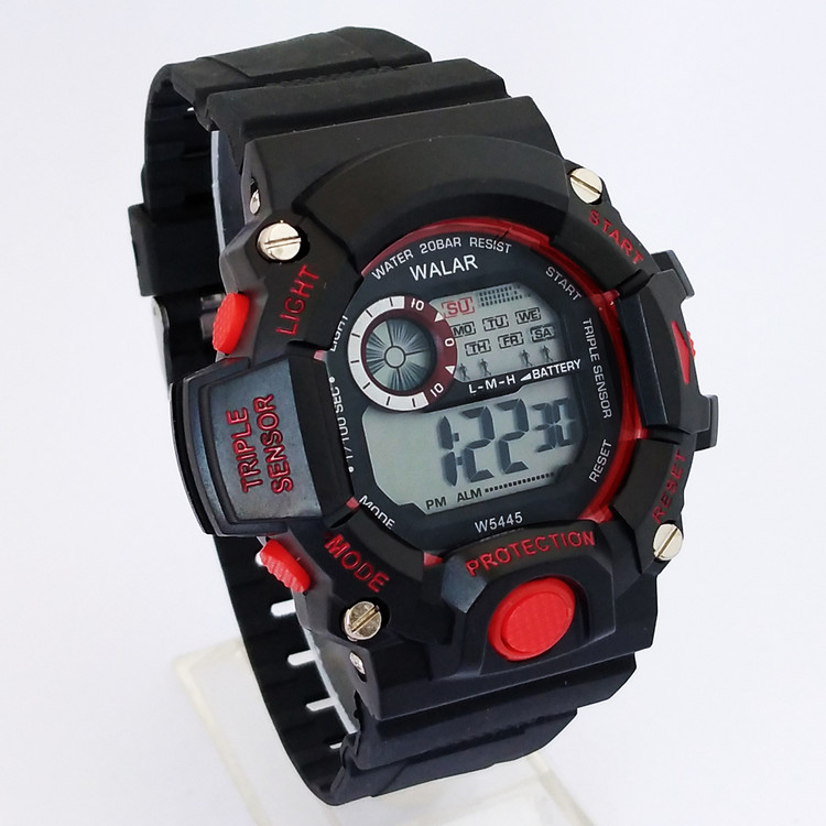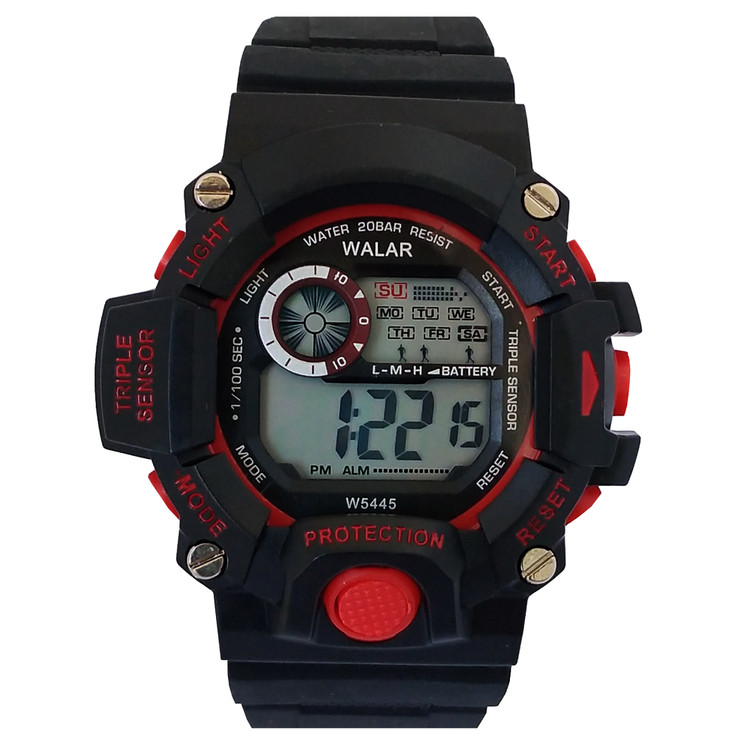 ساعت پسرانه والار اسپرت ورزشی SPORT مشکی قرمز چراغدار ضدآب کیفیت درجه یک