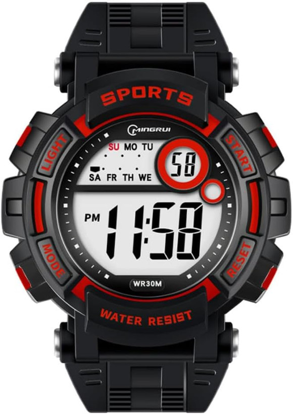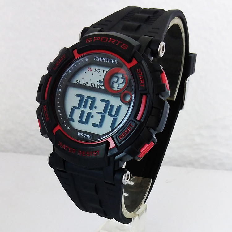 ساعت دیجیتال مشکی قرمز اسپرت استخری امپاورEMPOWERضدآب پسرانه دخترانه چراغدار SPORT