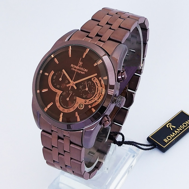 ساعت بندفلزی رومانسون مردانه روزیخ شامپاینی SPORT اسپرتROMANSON سه موتوره ضدآب ساعت خاص عقربه ای قهوه ای بنفش کرنوگراف