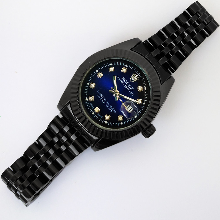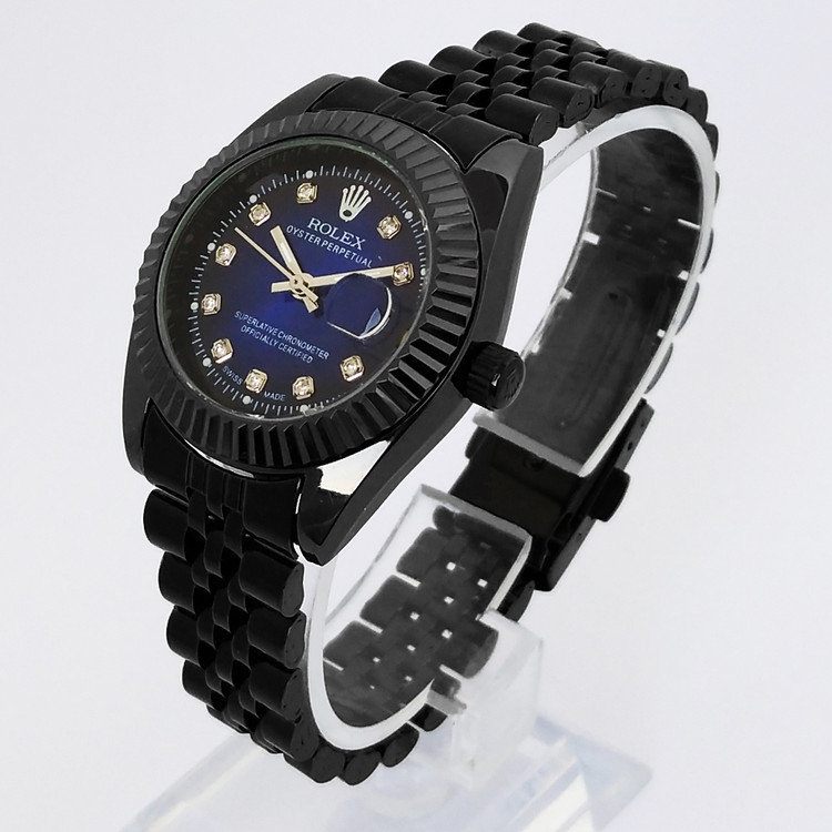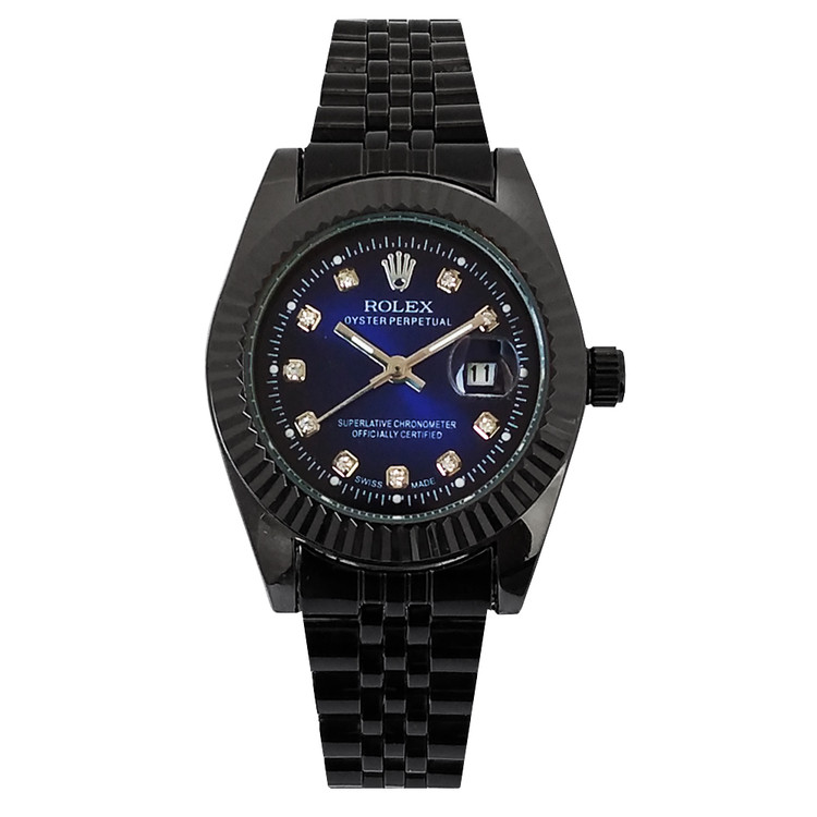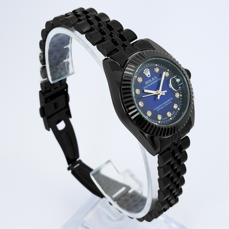 ساعت بندفلزی رولکس زنانه مشکی سرمه ای ضدآب تاریخ شمار هدیه شیک خاص کادو تولد سورمه ایROLEX