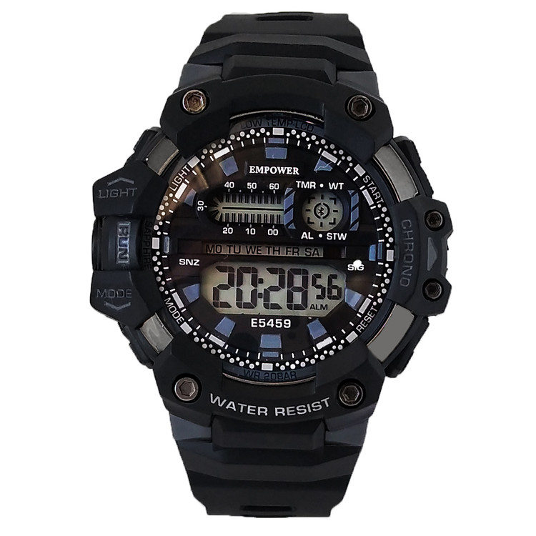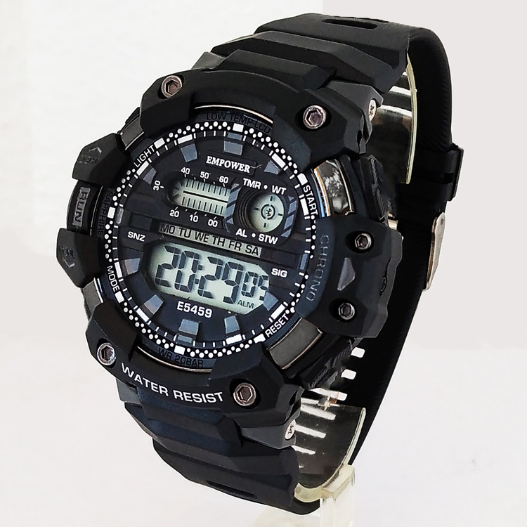 ساعت مچی دیجیتالی امپاورساعت مچی دیجیتالی امپاور EMPOWERمردانه و پسرانه مشکی ضدآب کرنومتر دار چراغدار تایمر باکیفیت مردانه و پسرانه مشکی ضدآب کرنومتر دار چراغدار تایمر باکیفیت تک سوراخ