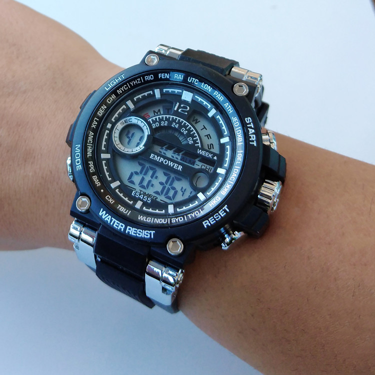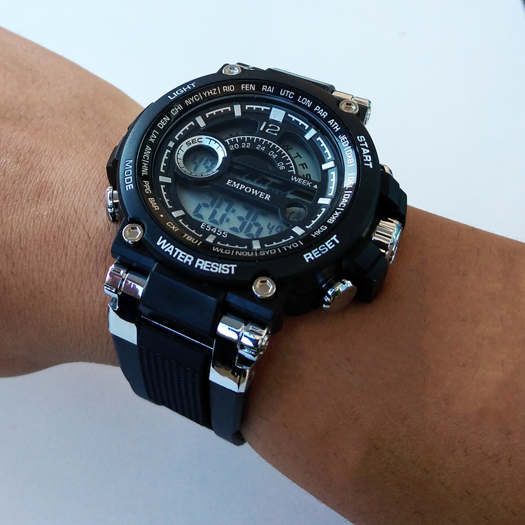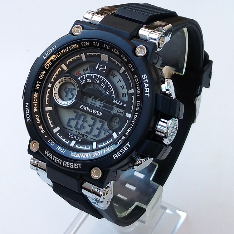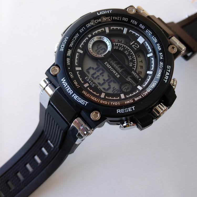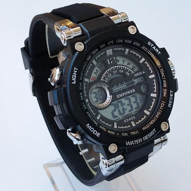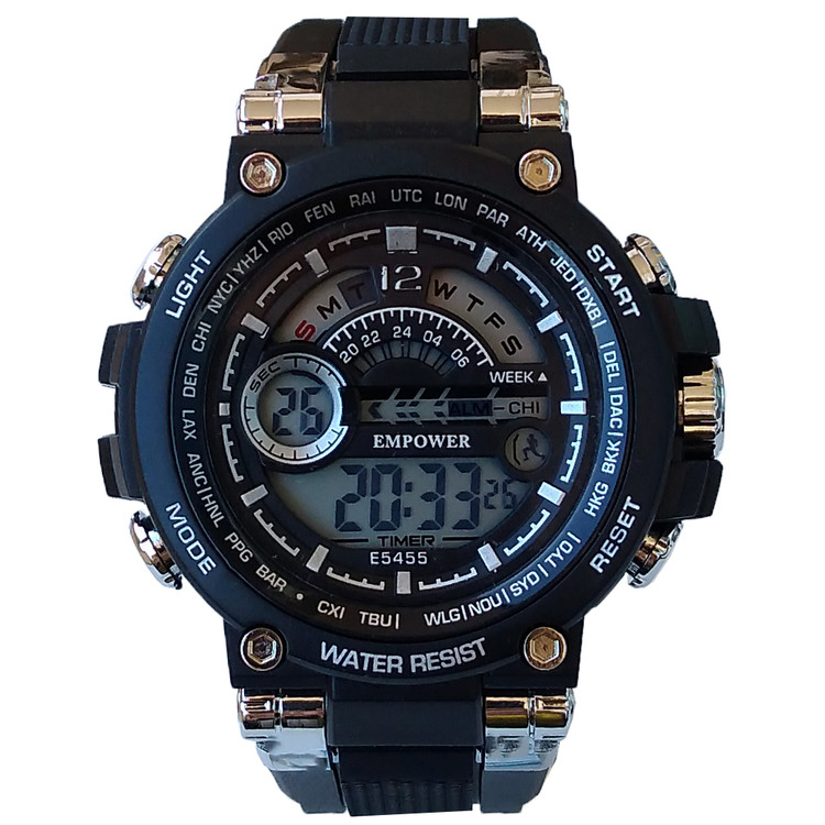 ساعت مچی دیجیتال ورزشی مشکی ساعت اسپرت امپاور مردانه پسرانه ضدآب کرنومتر دار چراغدار تایمر EMPOWER