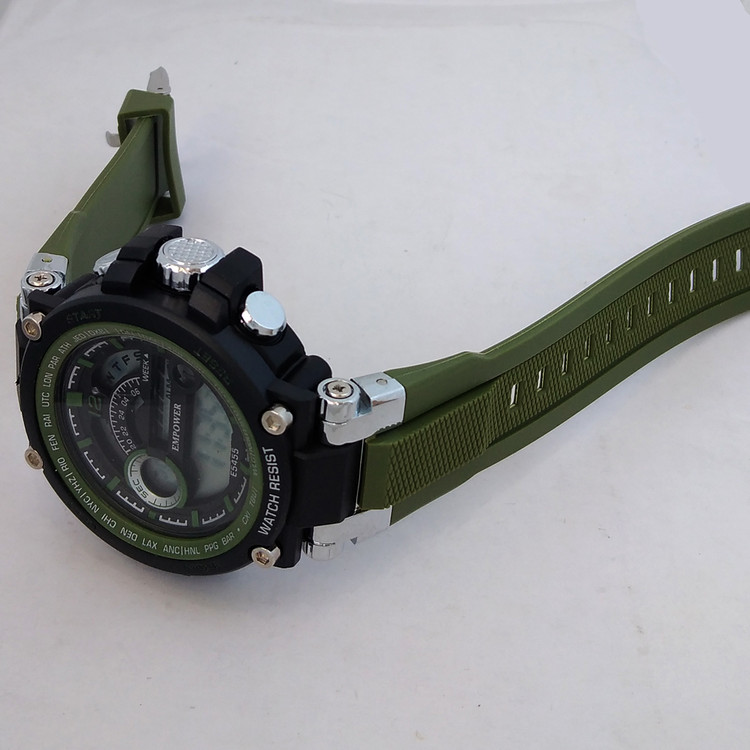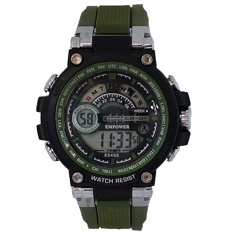 ساعت مچی دیجیتال ورزشی مشکی سبز ساعت اسپرت امپاور مردانه پسرانه ضدآب کرنومتردار خاکستری چراغدار تایمر EMPOWER