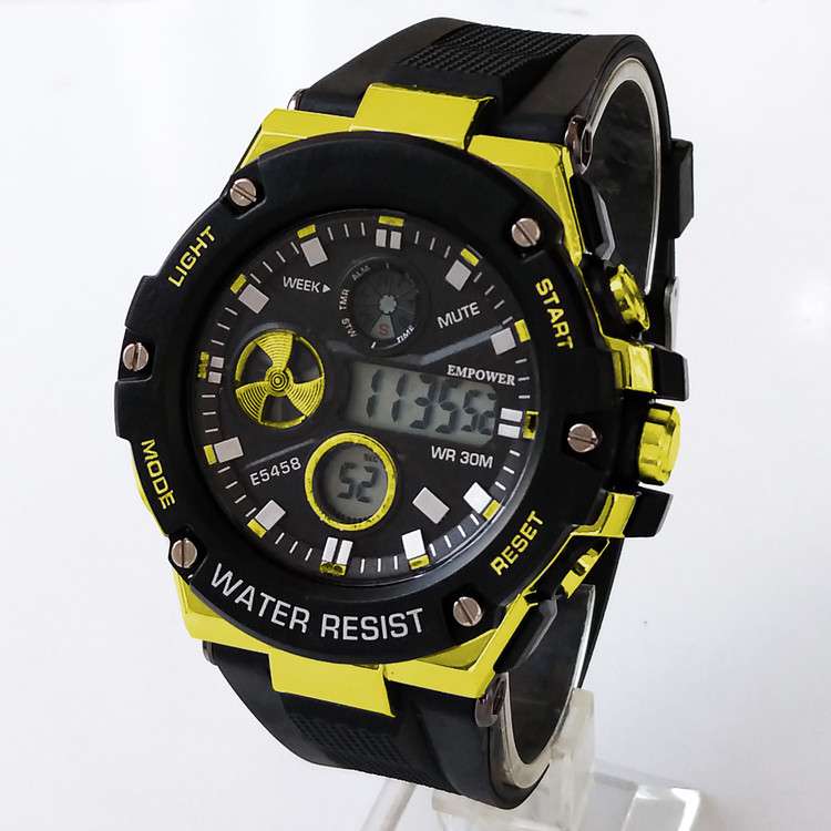 ساعت مچی ورزشی اسپرت دیجیتالی مردانه امپاور قاب طلایی ضدآب کرنومتر دار چراغدار تایمر باکیفیت EMPOWER قاب رنگی