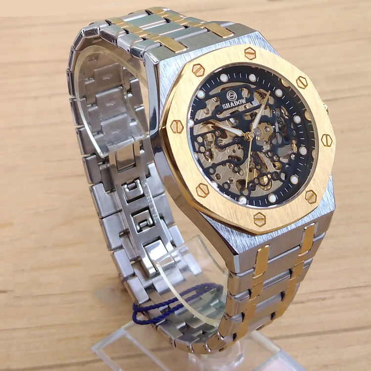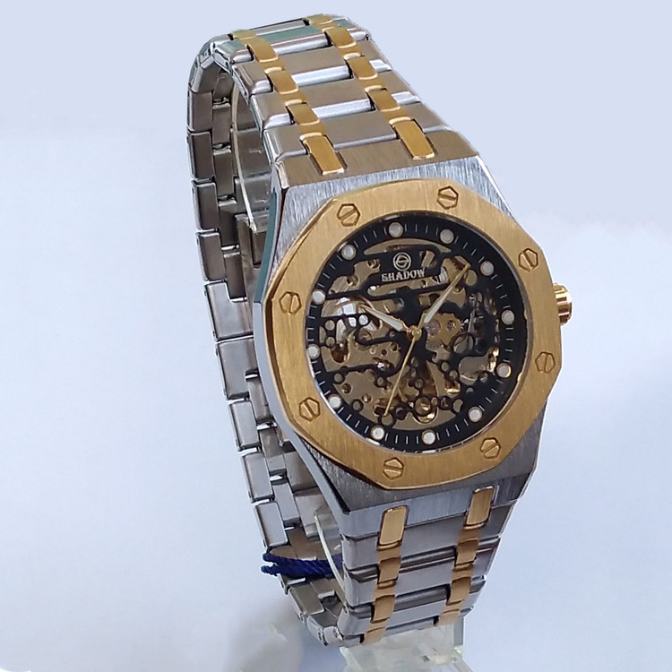 ساعت اتوماتیک نبضی کوکی شادو مردانه نقره ای طلایی ضدآب کادولاکچری خاص اتومات