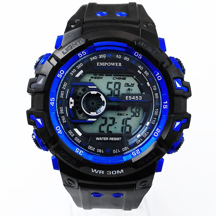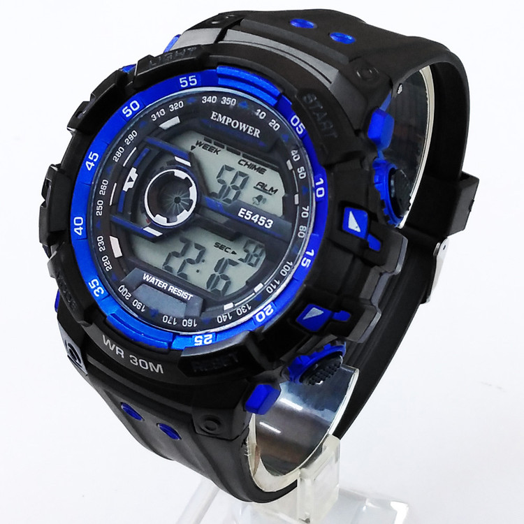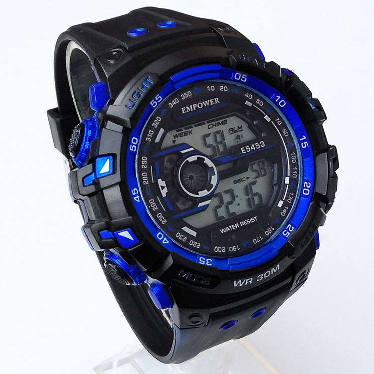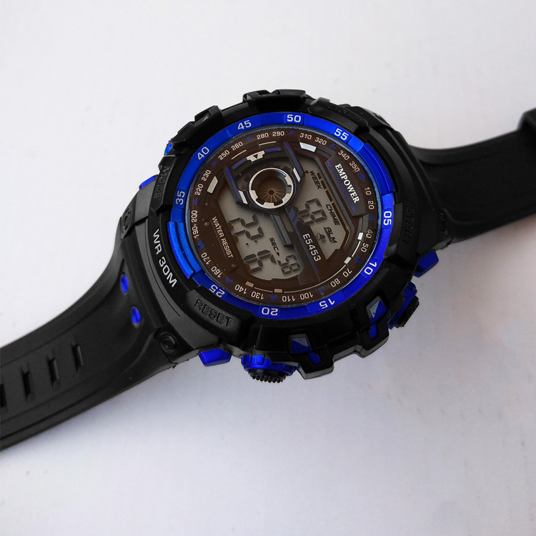ساعت اسپرت مشکی آبیSPORTپسرانه و دخترانه امپاور ضدآب ساعت شیک لاکچریEMPOWER دایره