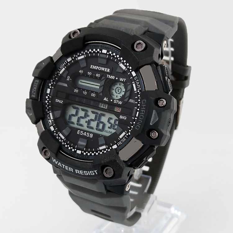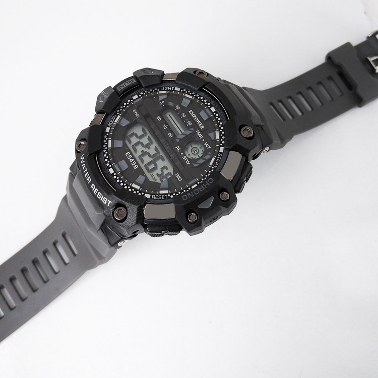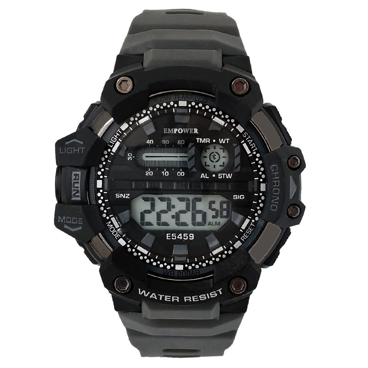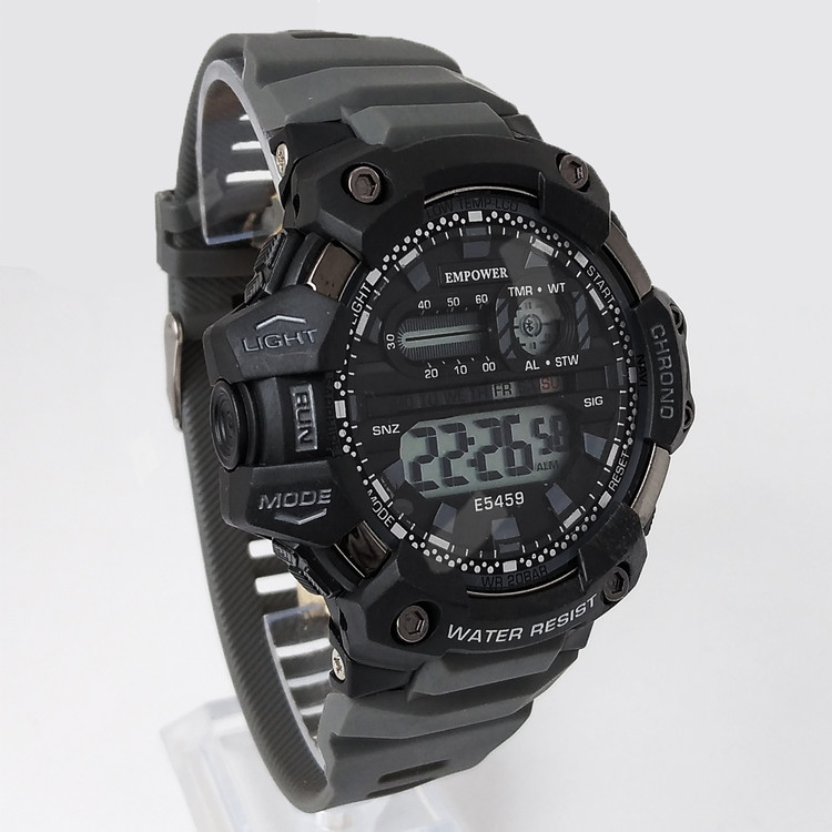 ساعت دیجیتال پسرانه مردانه امپاور مشکی طوسی خاکستری پسرانه ضدآب کرنومتر دار چراغدار تایمر باکیفیت تک سوراخ