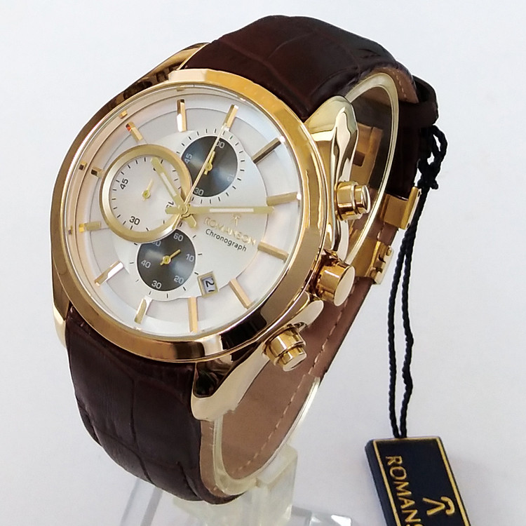 ساعت رومانسون مردانه قهوه ای طلایی بندچرم ROMANSON ضدآب ارسال رایگان ساعت خاص بندچرمی