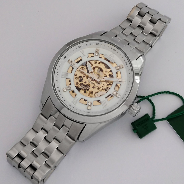 ساعت مردانه اتومات فیترونFITRON اتوماتیک نبضی بندفلزی ضدآب رنگ ثابت عقربه ای بدون باتری ساعت طلایی نقره ای طلایی قفل ضامن دار