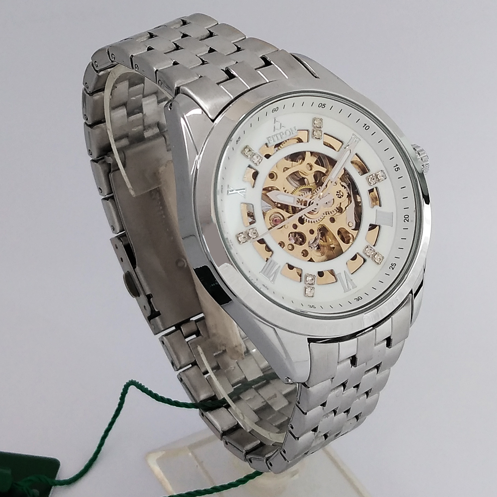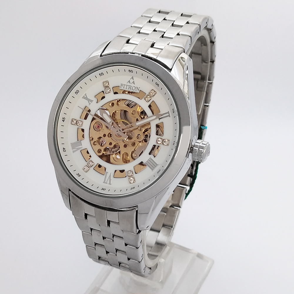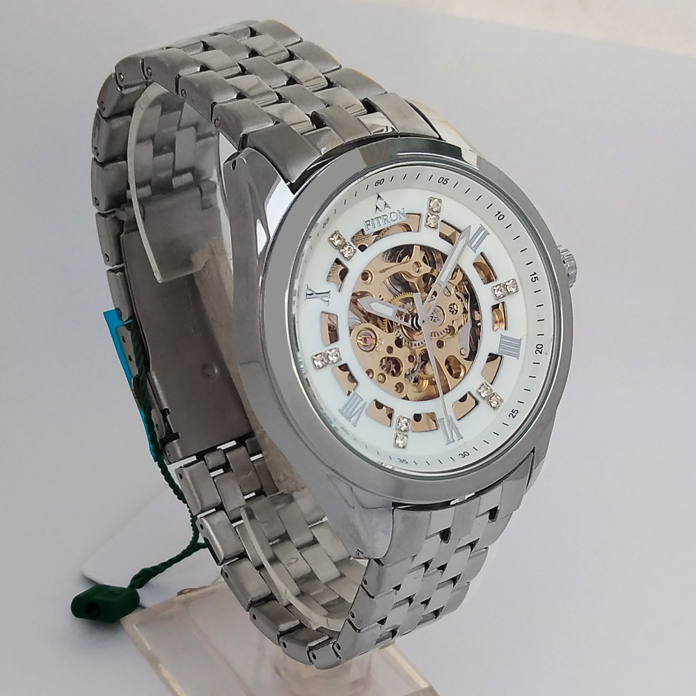 ساعت مردانه اتومات فیترونFITRON اتوماتیک نبضی بندفلزی ضدآب رنگ ثابت عقربه ای بدون باتری ساعت طلایی نقره ای طلایی قفل ضامن دار