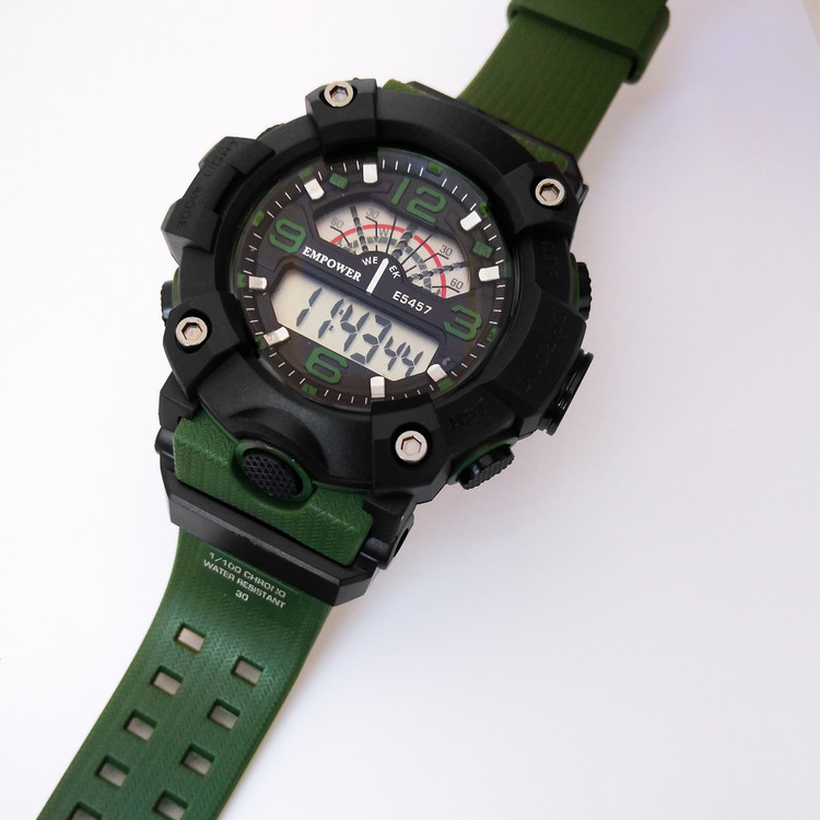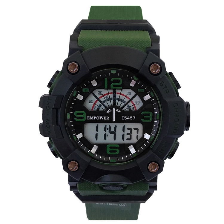 ساعت اسپرت ورزشی مشکی سبزSPORTپسرانه - مردانه امپاور کمربندی ضدآب ساعت شیک لاکچریEMPOWER طرح جیشاک جی شاک