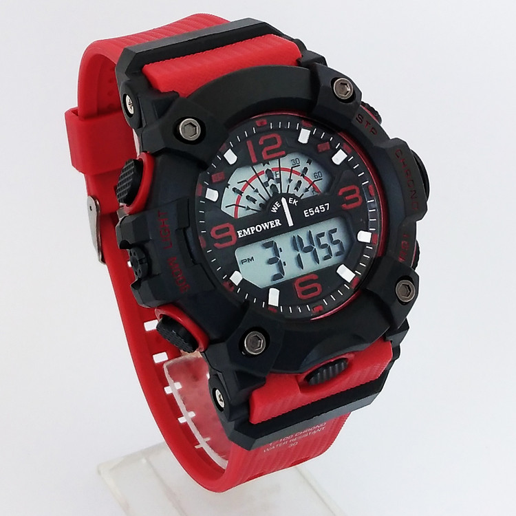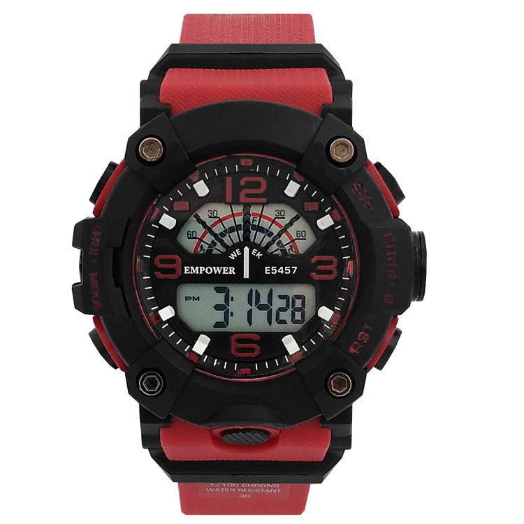 ساعت اسپرت ورزشی مشکی قرمزSPORTپسرانه - مردانه امپاور کمربندی ضدآب ساعت شیک لاکچریEMPOWER طرح جیشاک جی شاک