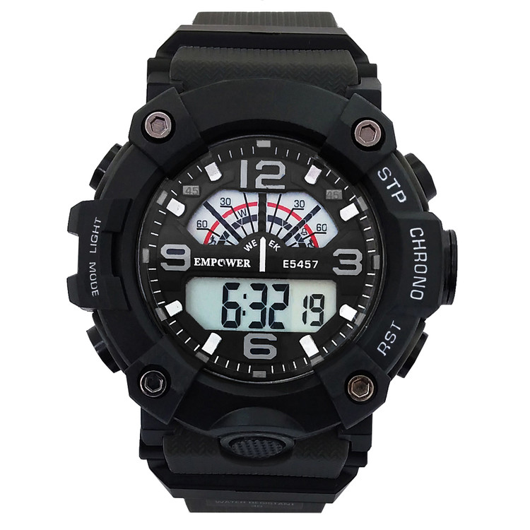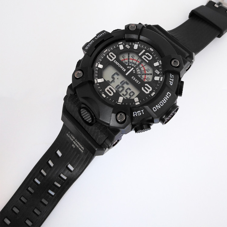 ساعت اسپرت ورزشی مشکی SPORTنقره ای پسرانه - مردانه امپاور کمربندی ضدآب ساعت شیک لاکچریEMPOWER طرح جیشاک جی شاک