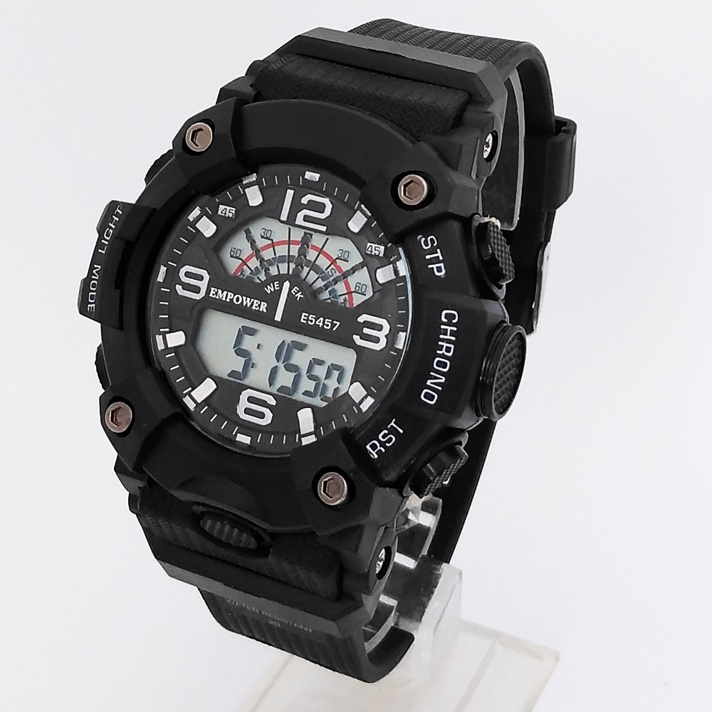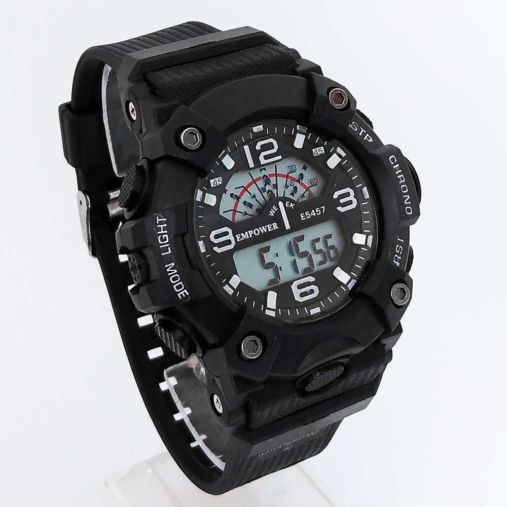 ساعت اسپرت ورزشی مشکی SPORTنقره ای پسرانه - مردانه امپاور کمربندی ضدآب ساعت شیک لاکچریEMPOWER طرح جیشاک جی شاک