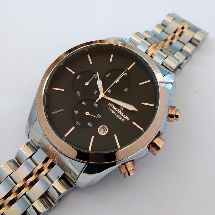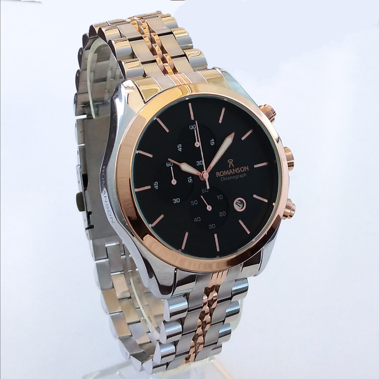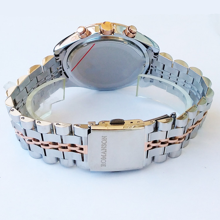 رومانسون ROMANSONبند فلزی مردانه ساعت رزگلد نقره ای کرنوگراف سه موتور فعال تاریخ شمار ضدآب