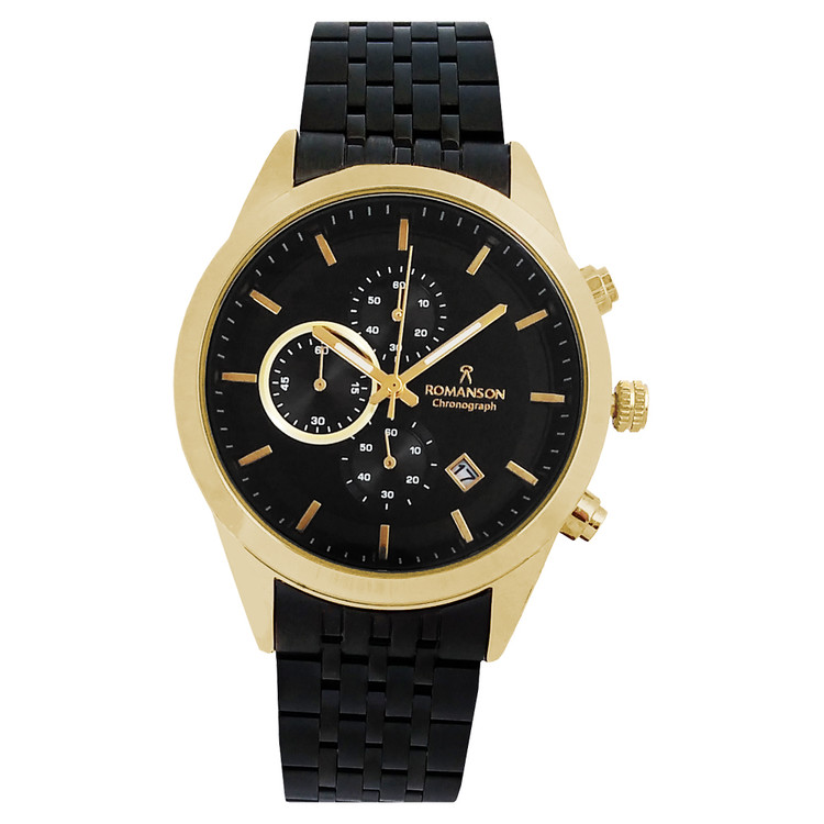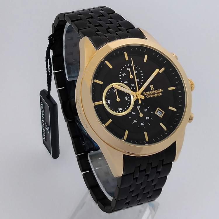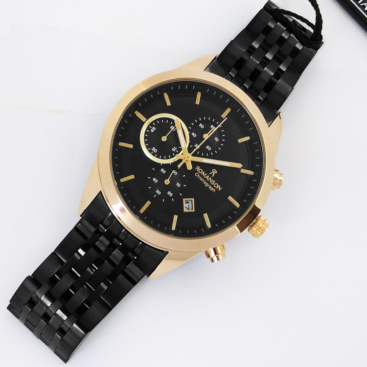 ساعت مچی مردانه کرنوگراف رومانسون سه موتور اسپرت طلایی مشکی رومانسونROMANSON ضدآب ساعت خاص عقربه ای بند فلزی کرنوگراف