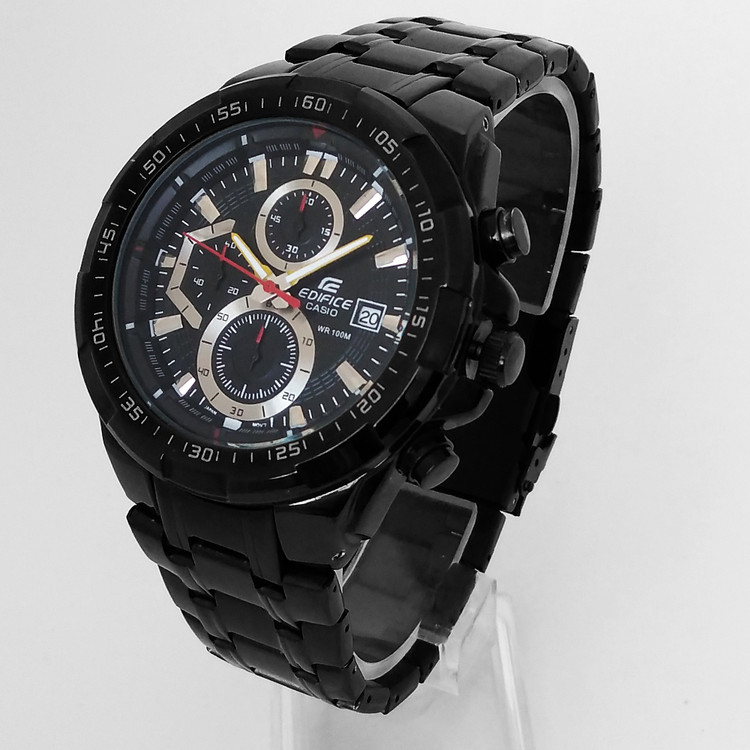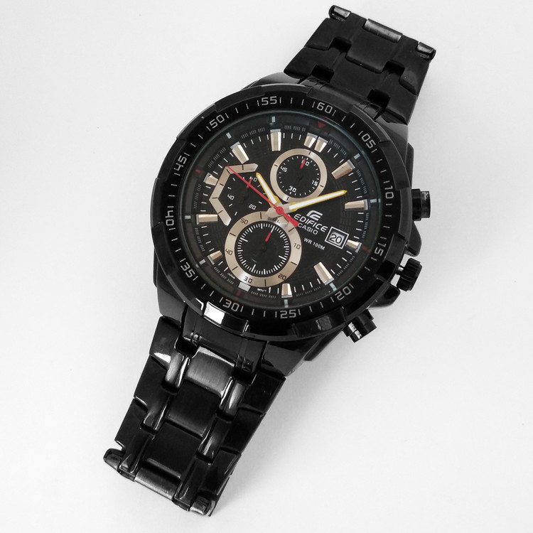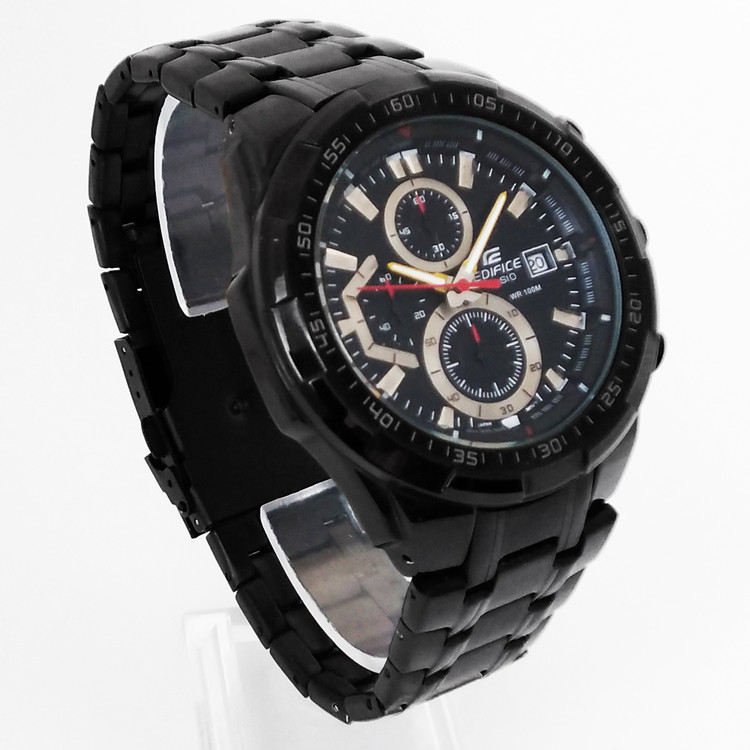 ساعت مردانه بندفلزی مشکی ضدآب رنگ ثابت ادیفیس کاسیو سه موتور کرنوگراف کادوتولدEDIFICE CASIO