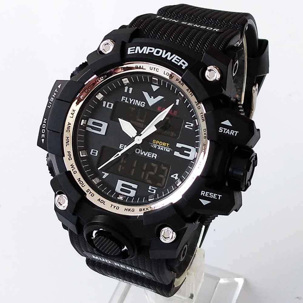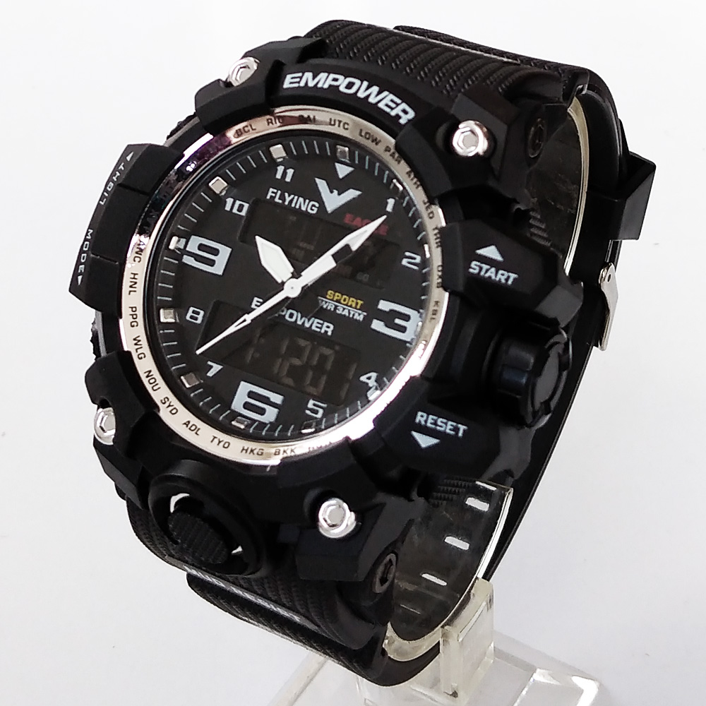 ناموجود ساعت اسپرت مردانه امپاور مشکی نقره ای EMPOWER دوزمانه ضدآب چراغدار طرح جی شاکSPORT