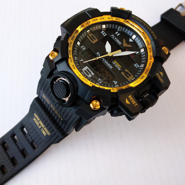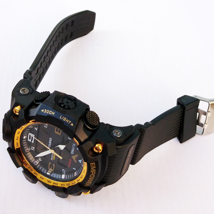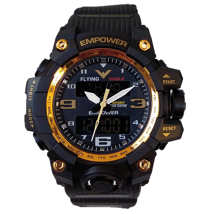 ناموجود ساعت اسپرت مردانه امپاور مشکی طلاییEMPOWER دوزمانه ضدآب چراغدار طرح جی شاکSPORT