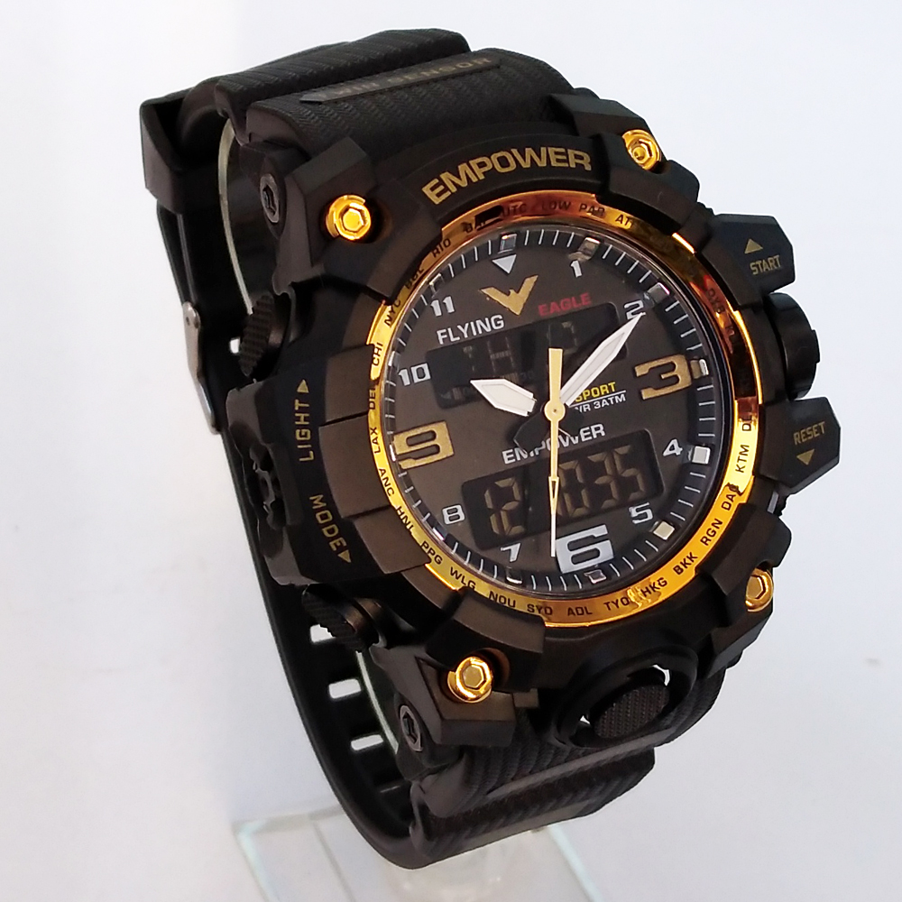 ناموجود ساعت اسپرت مردانه امپاور مشکی طلاییEMPOWER دوزمانه ضدآب چراغدار طرح جی شاکSPORT