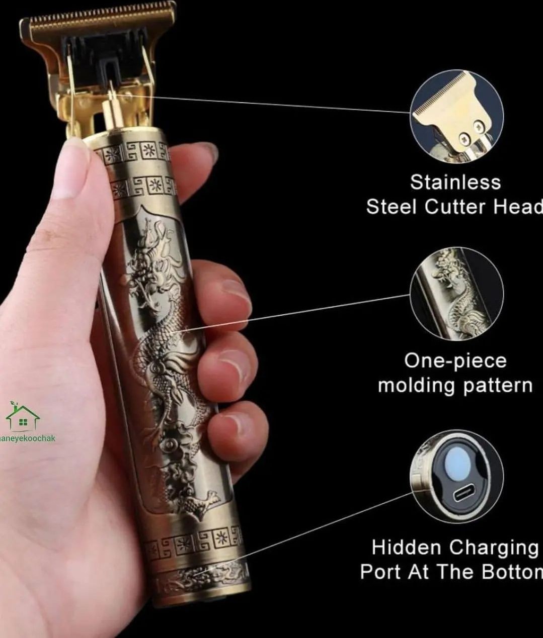 ماشین اصلاح خط زن دراگون طرح اژدها بدنه فلزی شارژی شیور مردانه موزر با تیغه استیل ضد زنگ