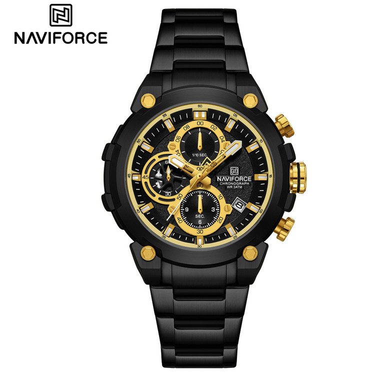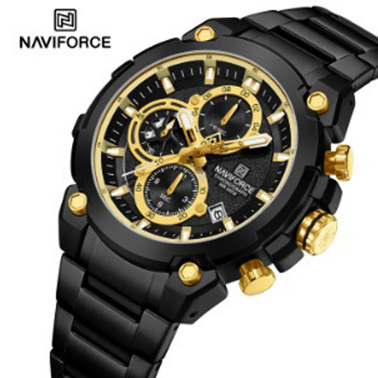 ساعت مچی عقربهای بندفلزی استیل مردانه نیوی فورس مدل سه موتوره ناوی فورس NAVIFORCE NF8071