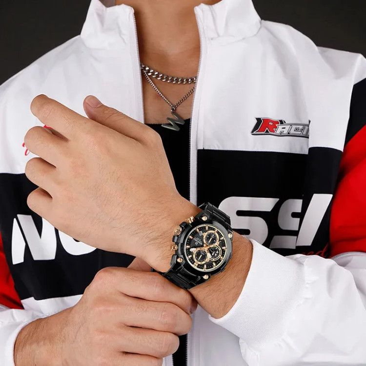 ساعت مچی عقربه ای مردانه نیوی فورس مدل NF8071 جدیدترین سری نیوی فورس دارای 3 موتور قدرتمند کوارتز فول تایم است.