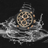 طراحی ضد آب: مناسب برای شستن دست، در هوای شرجی وبارانی و پاشیدن آب به ساعت و در ضمن ساعت را نمی توان در حمام گرم استفاده کرد. این ساعت عقربهای مردانه دارای ظاهری شیک و جذاب بوده و برای استفاده در هر شرایطی کاملا مناسب خواهد بود.برند نیوی فورس بر روی صفحه،سرکوک،قفل و پشت درب ساعت به زیبایی حک شده است.دارای کارت،دفترچه راهنما و جعبه با برند نیوی فورس می باشد.
