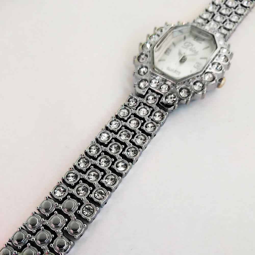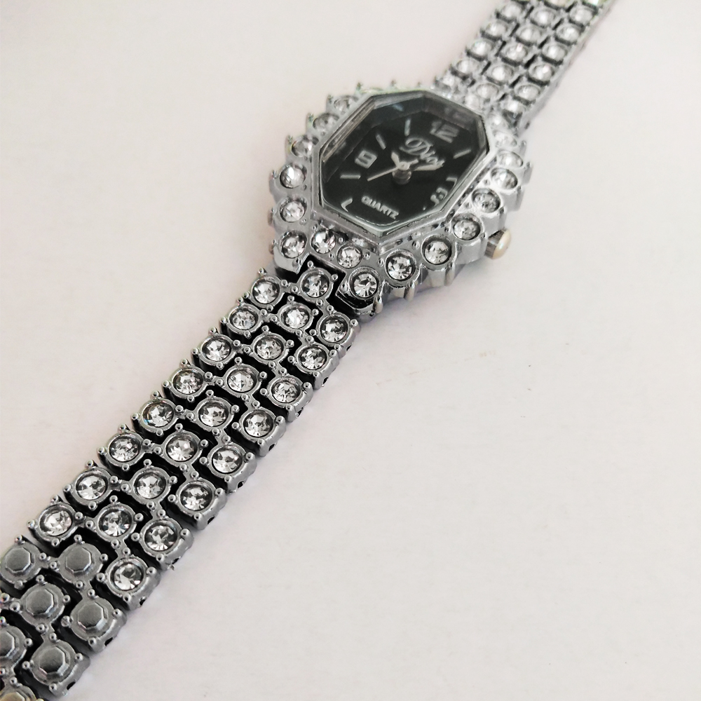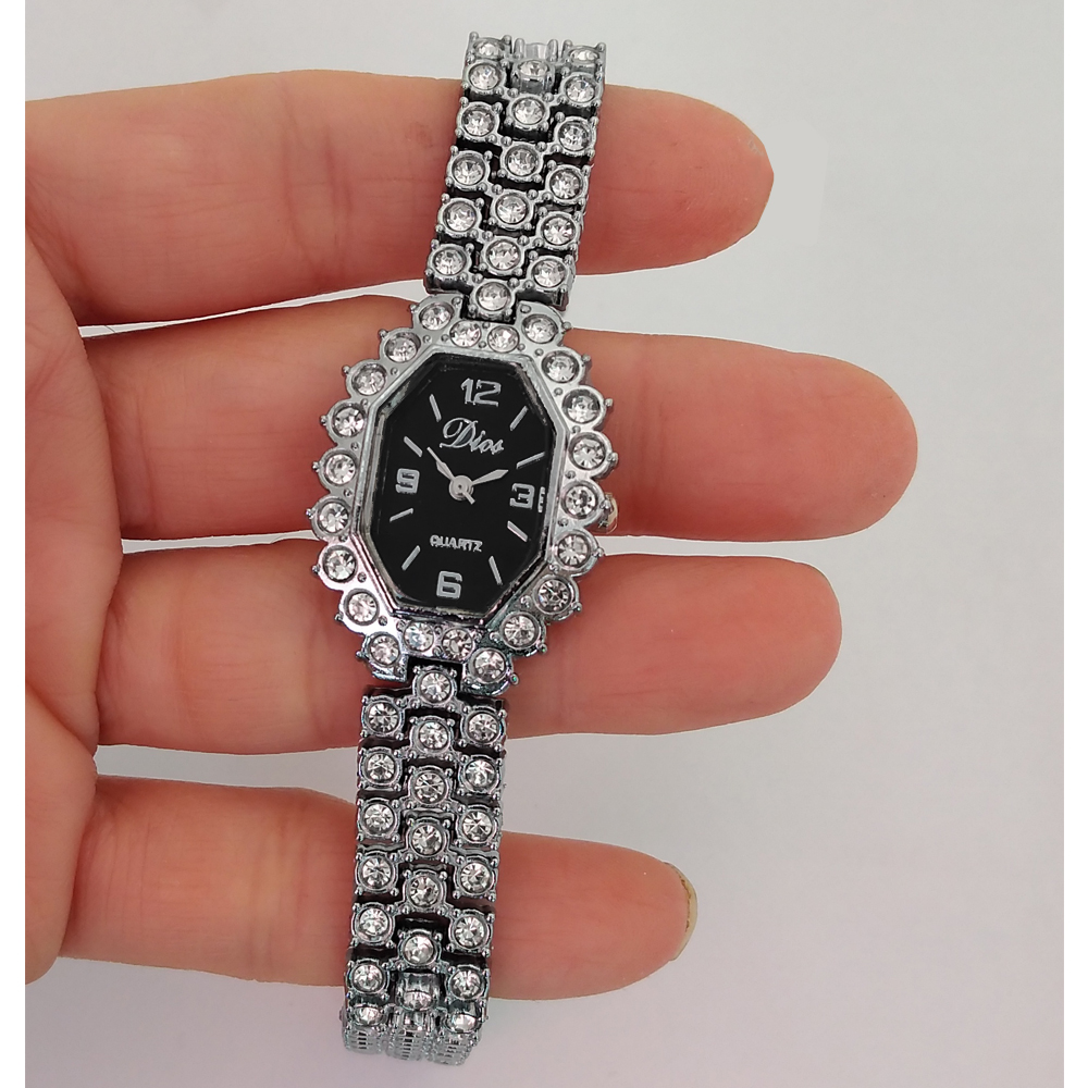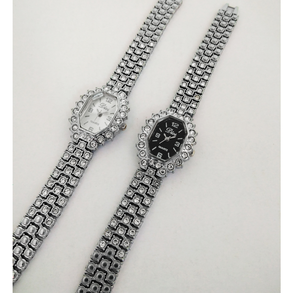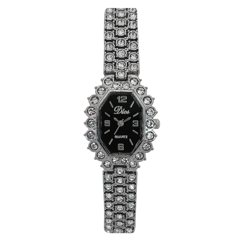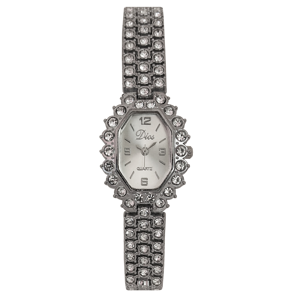 ساعت زنانه یا دخترانه طرح مجلسی بند فلزی فول نگین