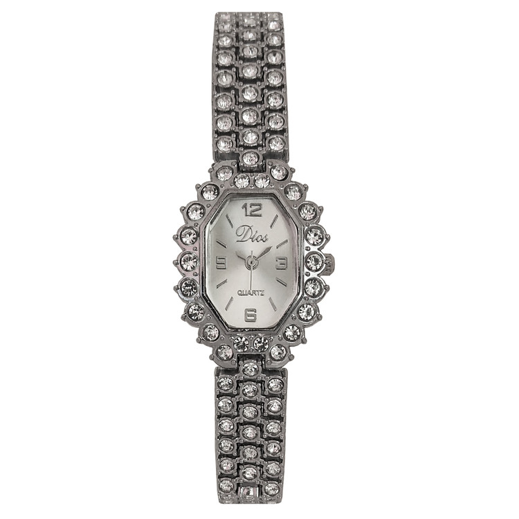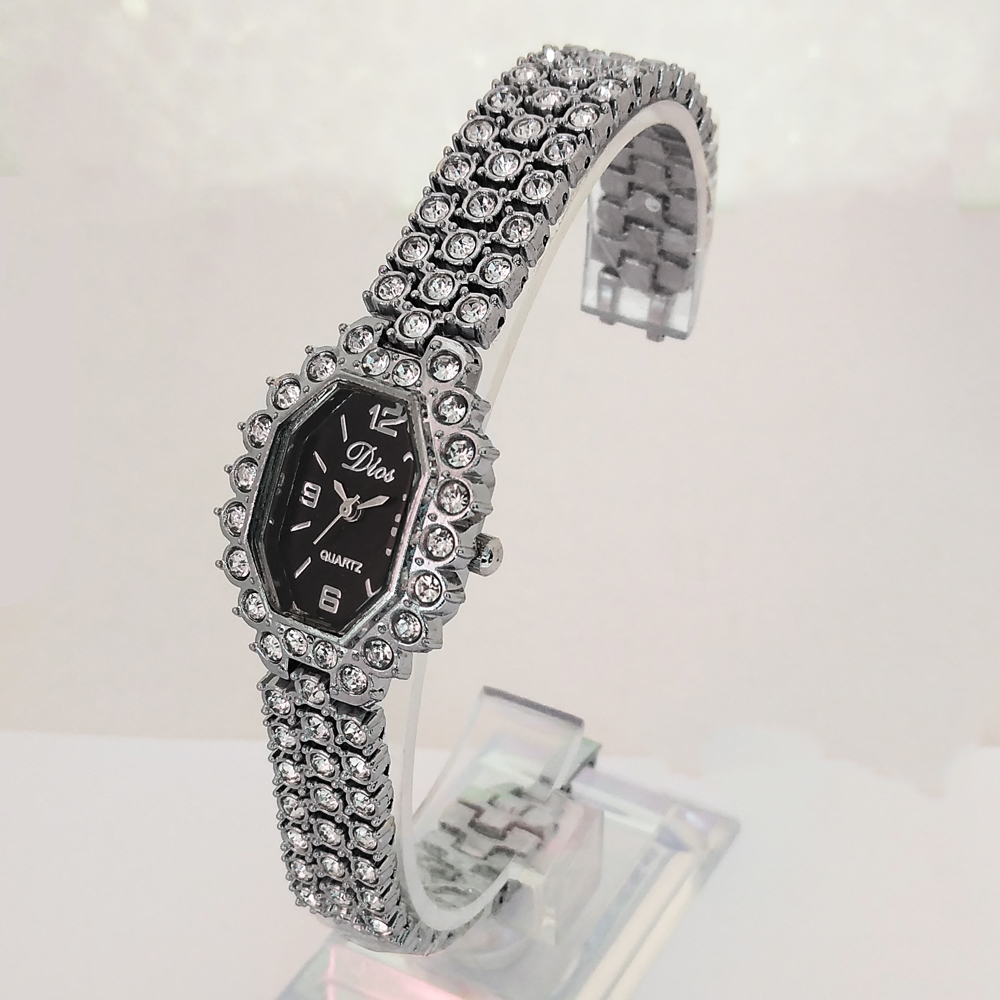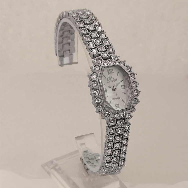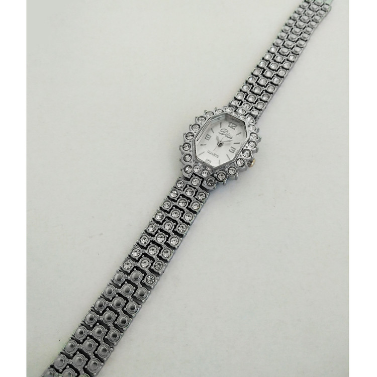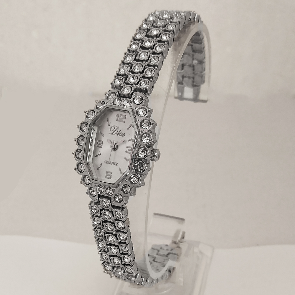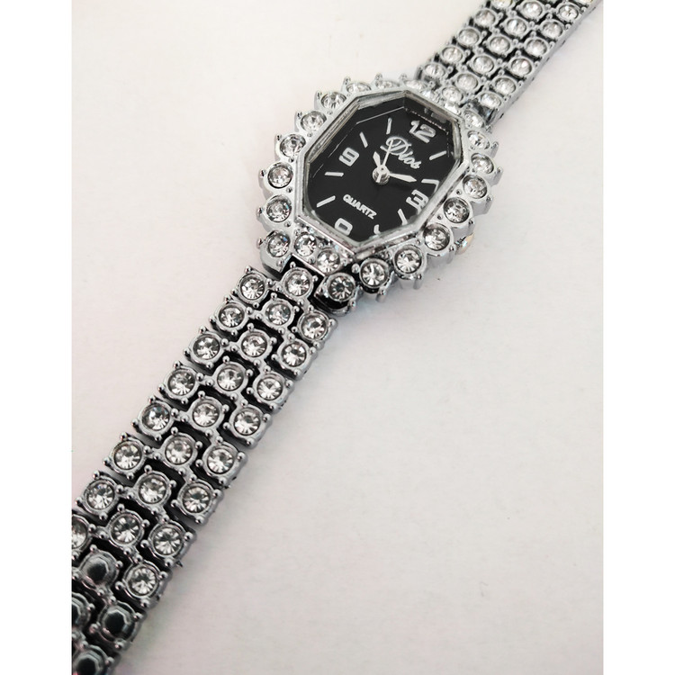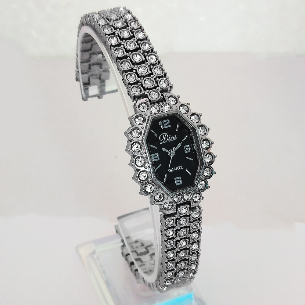 ساعت زنانه یا دخترانه طرح مجلسی بند فلزی فول نگین
