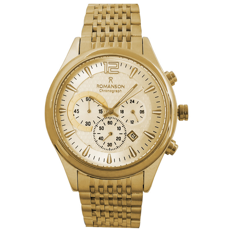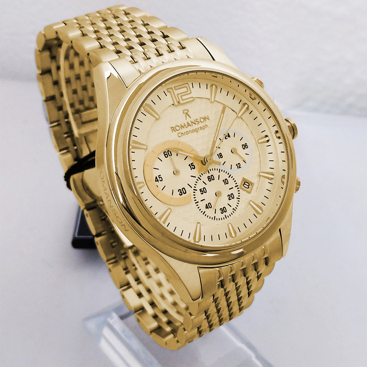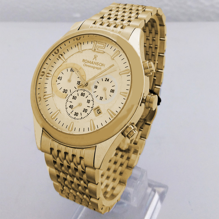 ساعت مچی مردانه رومانسون طلایی SPORT اسپرتROMANSON سه موتوره ضدآب ساعت خاص عقربه ای بند فلزی کرنوگراف