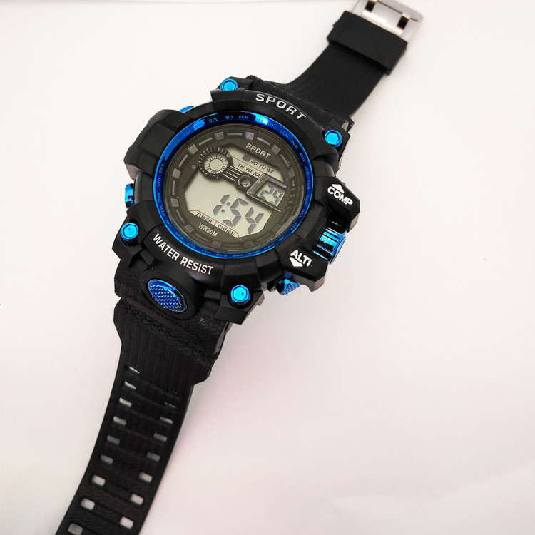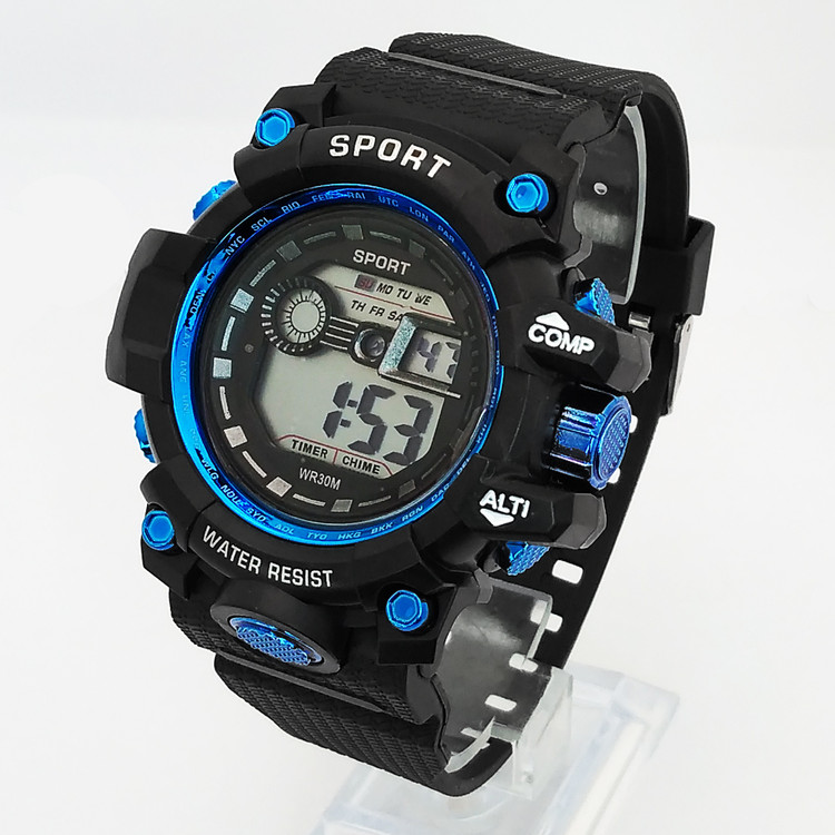 ساعت مچی دیجیتال پسرانه مردانه اسپرت ورزشیSPORT آبی مشکی سورمه ای مقاوم در برابر آب چراغدار کرنومتر سرمه ای