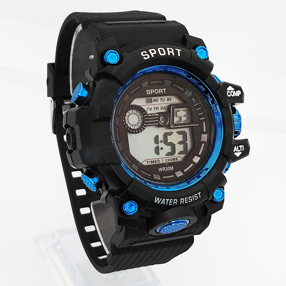 ساعت مچی دیجیتال پسرانه مردانه اسپرت ورزشیSPORT آبی مشکی سورمه ای مقاوم در برابر آب چراغدار کرنومتر سرمه ای