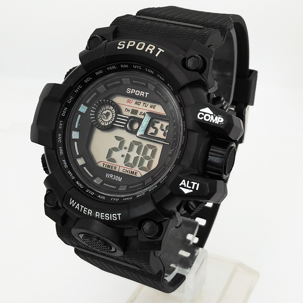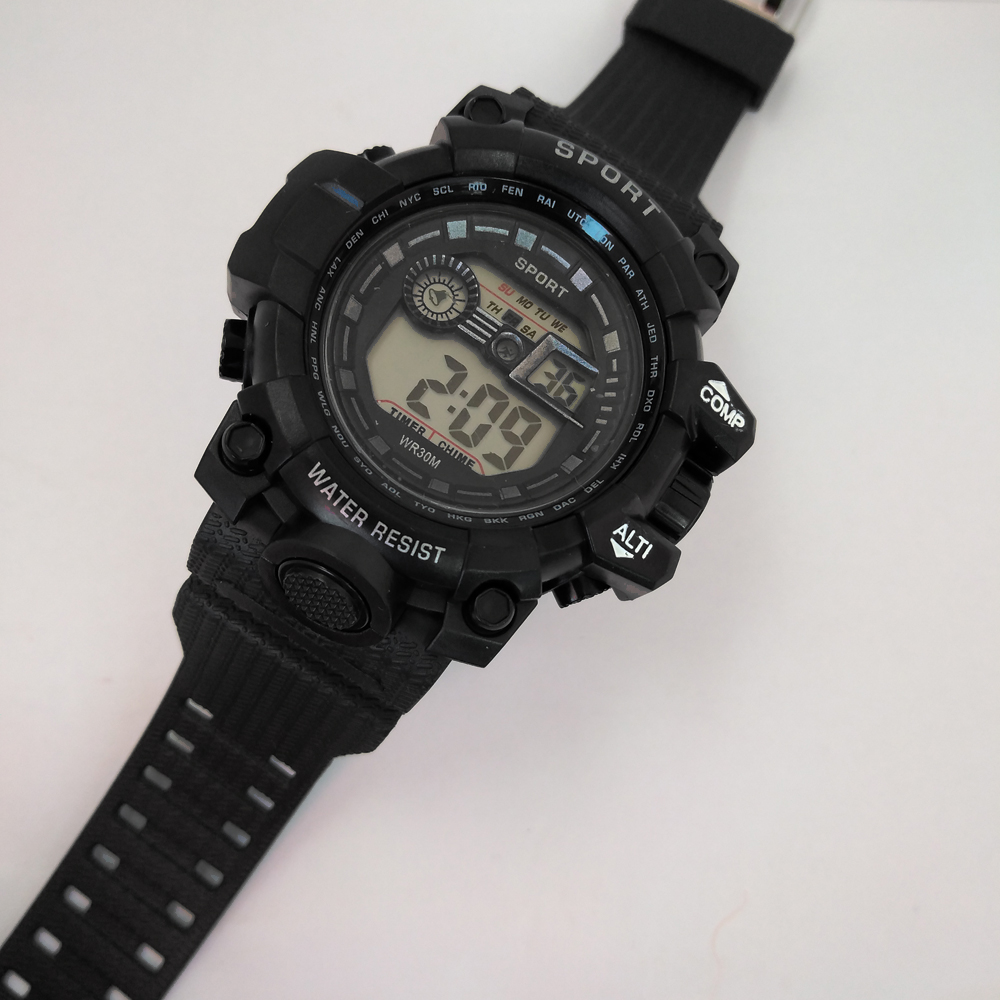 ساعت مچی دیجیتال پسرانه مردانه اسپرت ورزشیSPORT مشکی مقاوم در برابر آب چراغدار کرنومتر سرمه ای